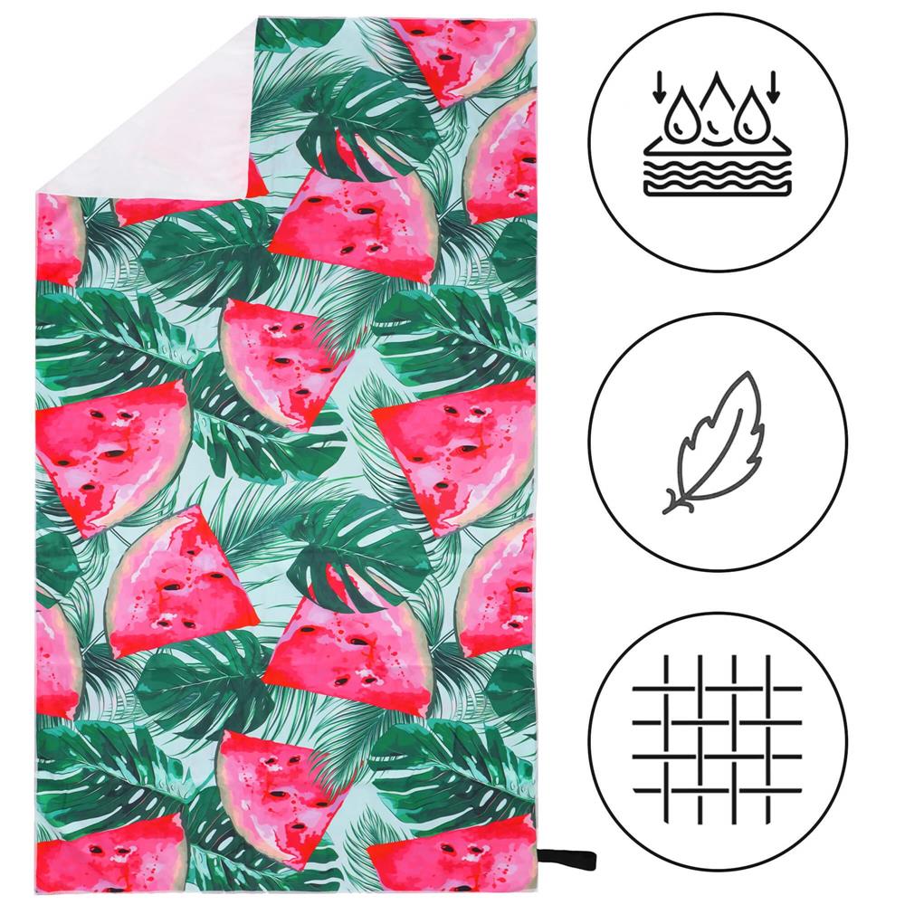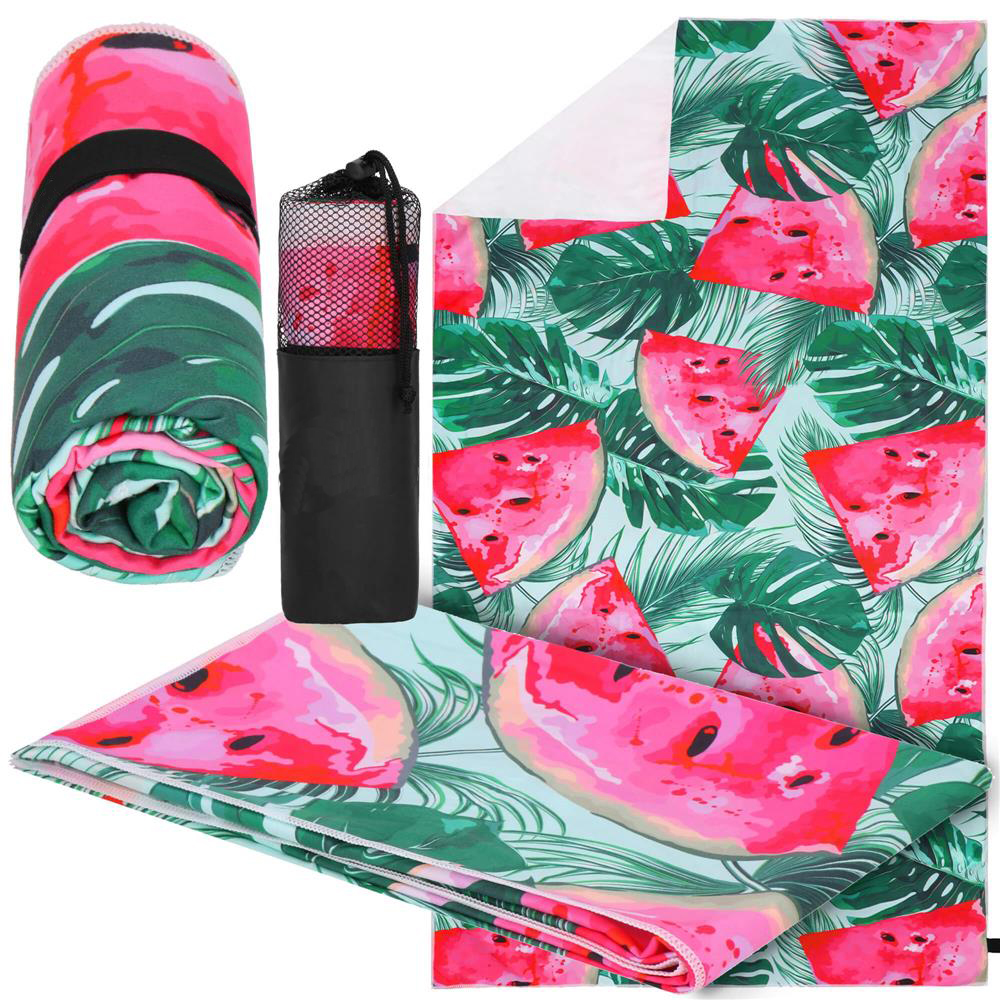 Bucură-te de zilele însorite cu acest prosop de plajă din microfibră, creat pentru confort, transport ușor și uscare rapidă. Cu dimensiunea generoasă de 90x180 cm și un design tropical cu model pepene verde, este alegerea ideală pentru plajă, piscină, lac, camping sau vacanțe. Materialul moale este plăcut la atingere, iar formatul compact îl face ușor de pus în geantă sau rucsac.