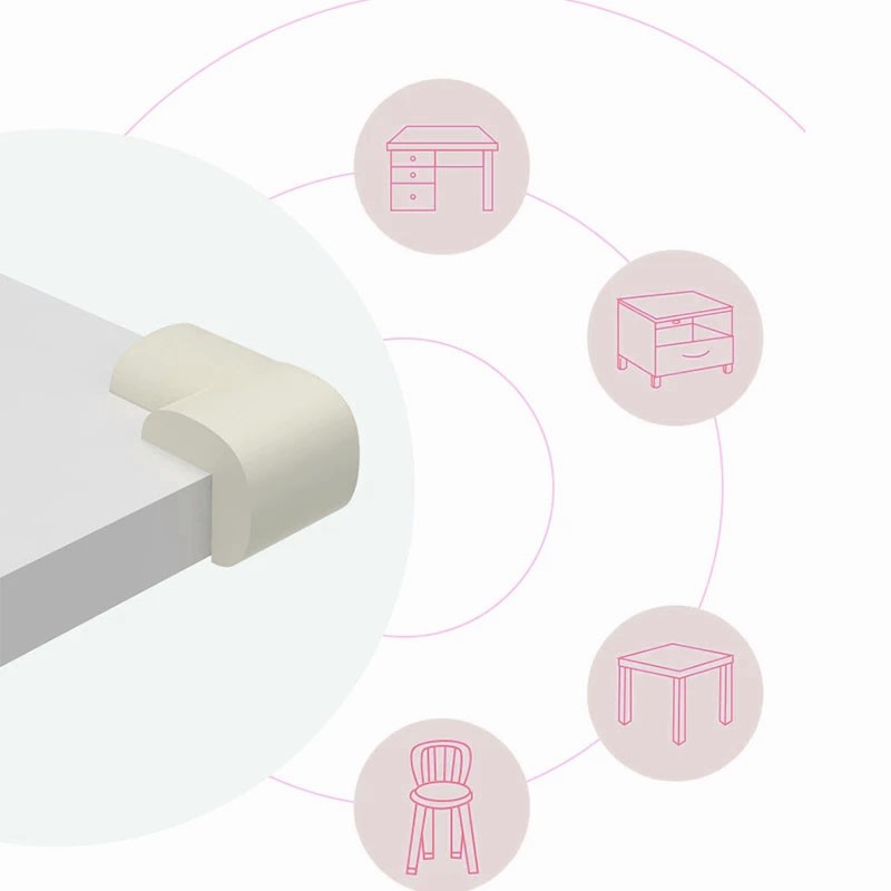 Accesoriile de protectie sunt necesare pentru a proteja copiii impotriva ranilor provocate de impactul cu colturile de mobilier si muchii. Se monteaza foarte usor prin simpla lipire cu banda dublu adeziva a acestora de colturile mobilierului, mesei, biroului sau a scarilor.