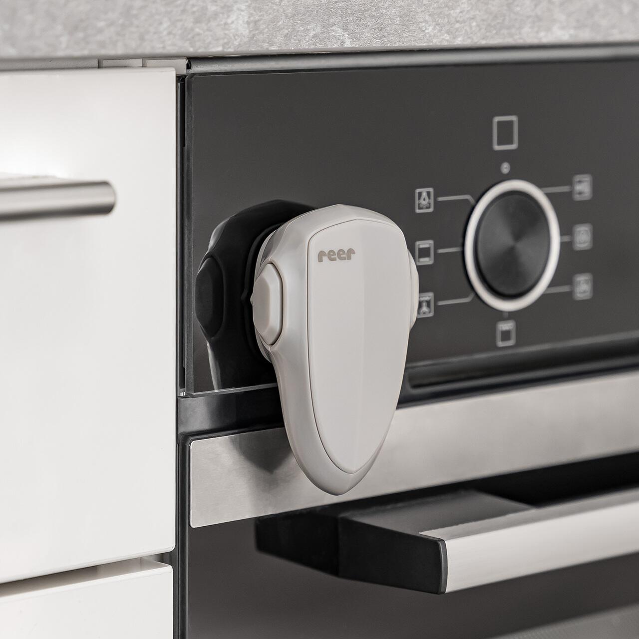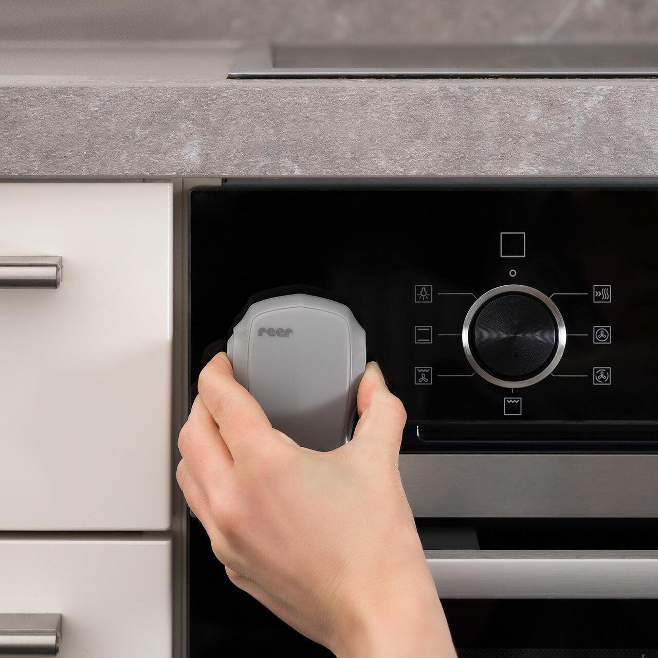 Cu siguranta de cuptor pentru copii de la Reer il puteti impiedica pe cel mic sa deschida usa cuptorului neobservat si astfel preveniti ranile.
