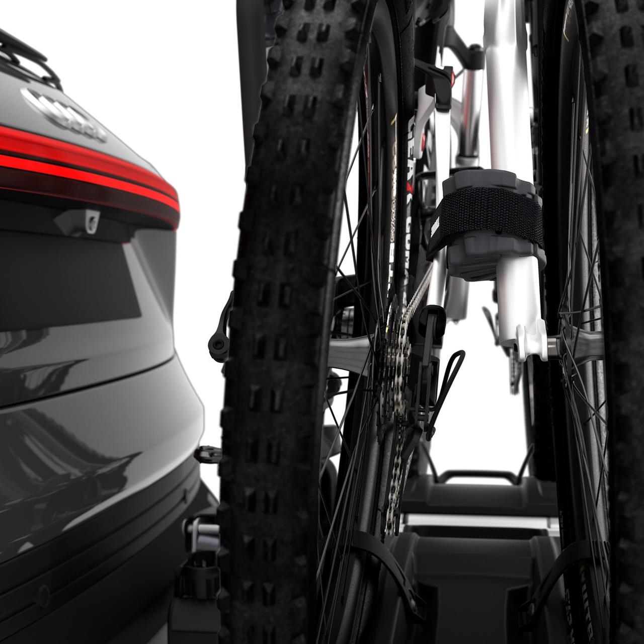 Cu ajutorul unui distanțier din cauciuc și al unei curele robuste, bicicletele sunt fixate mai bine și rămân separate în zonele sensibile de contact. Este o soluție ideală pentru cei care folosesc suporturi auto pentru biciclete sau doresc protecție suplimentară la depozitare.