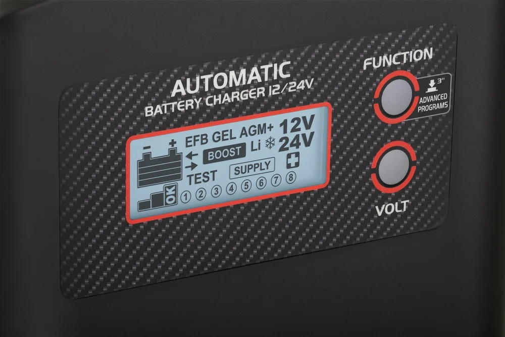 Incarcator electronic multifunctional pentru baterii, incarcator si tester pentru baterii WET, GEL, AGM, MF, PbCa, EFB, Li 12V/24V cu afisaj LCD.