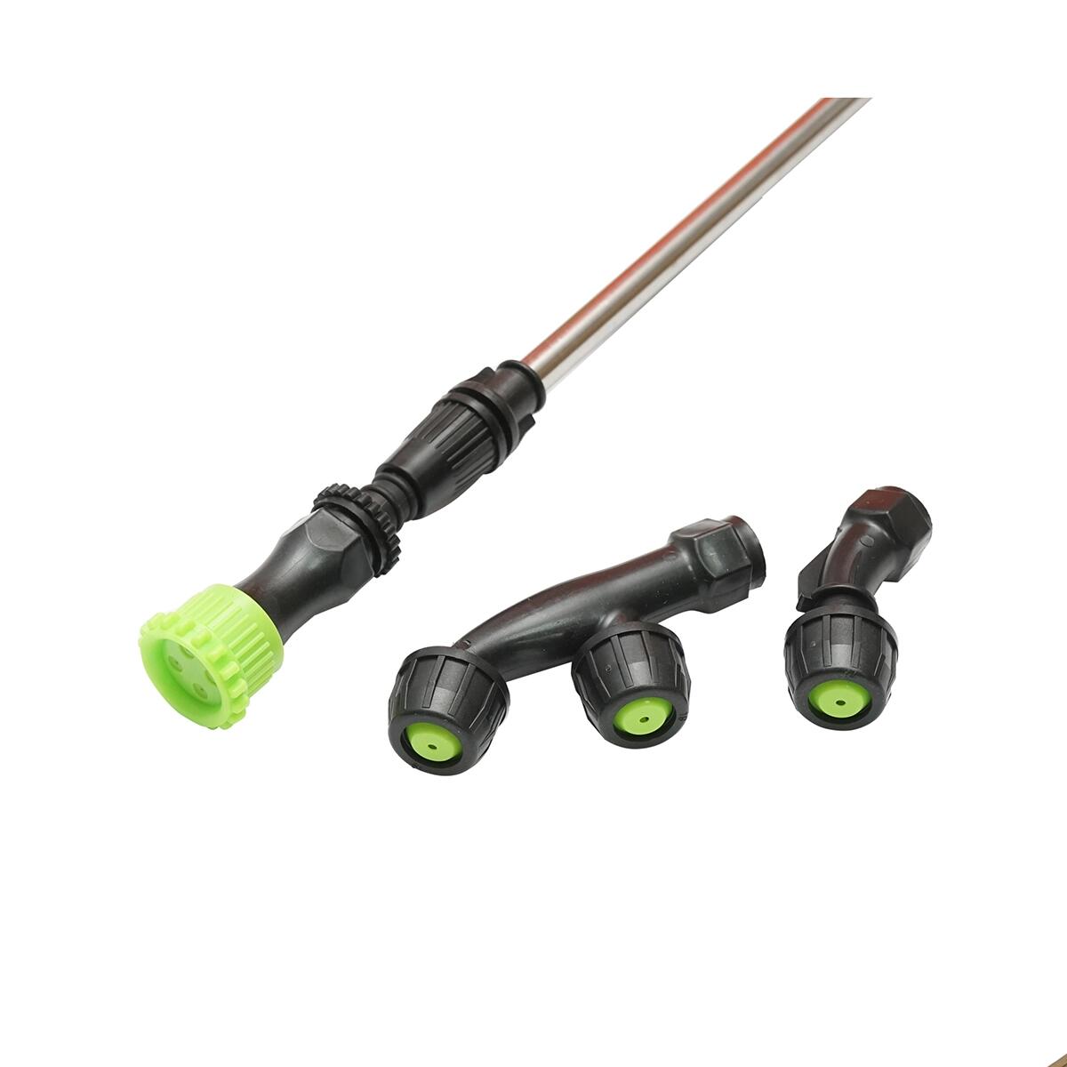 - Cele trei duze interschimbabile incluse in pachet ofera posibilitatea de a adapta tipul de pulverizare in functie de necesitati, asigurand o distributie optima a solutiilor pe diverse tipuri de culturi si plante.