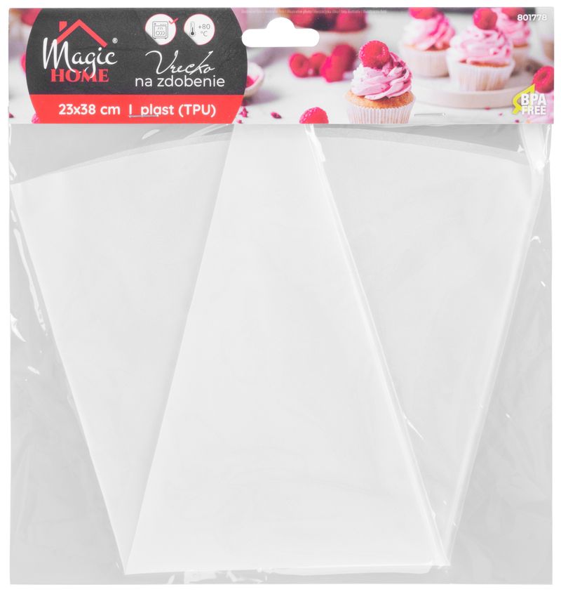 Punga de patiserie MagicHome este ideală pentru decorarea și umplerea torturilor, prăjiturilor, fursecurilor sau preparatelor sărate. Fabricată din material TPU (poliuretan termoplastic) rezistent și flexibil, oferă control bun la aplicarea cremelor și compozițiilor.