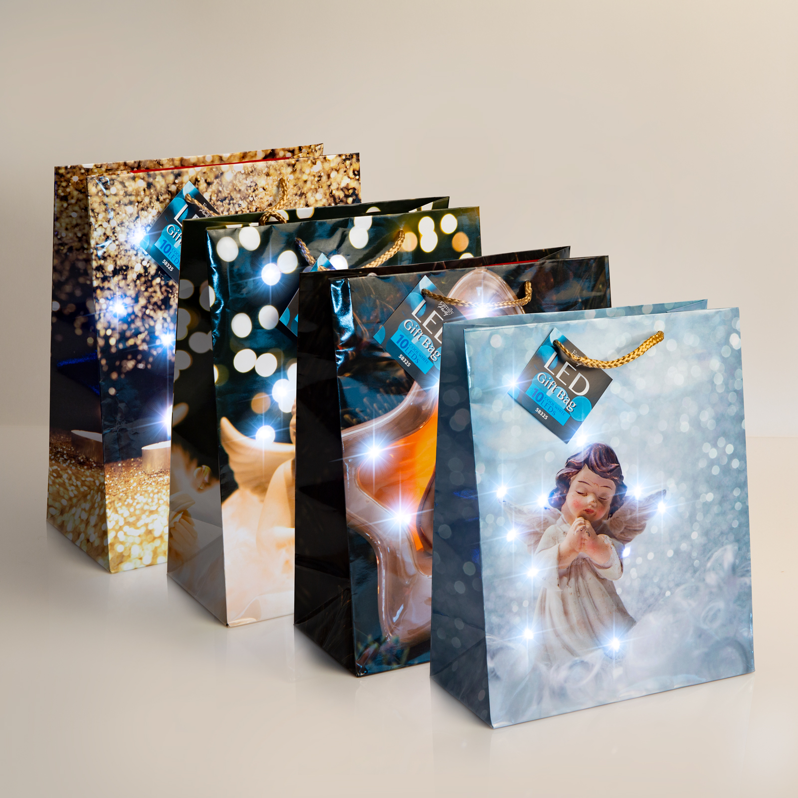 Pungi cadou hârtie cu led - 265 x 127 x 330 mm - 4 tipuri - 12 buc / pachet Best CarHome