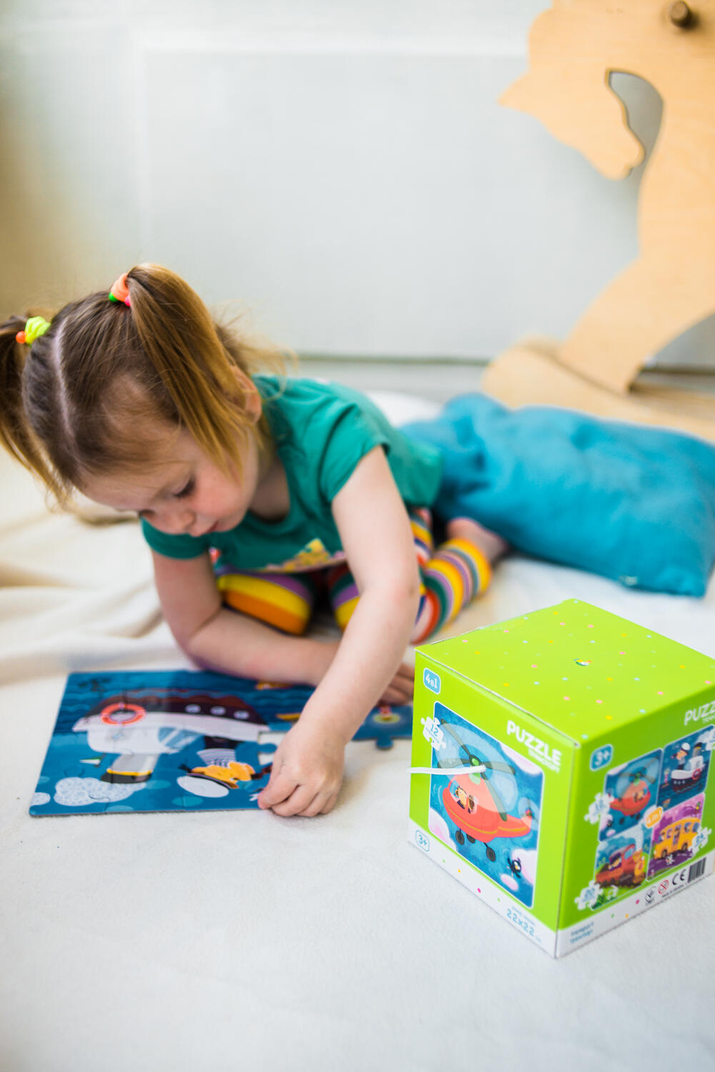 Utilizare: copilul asambleaza fiecare imagine separat, pornind de la puzzle-ul cu 12 piese si avansand treptat catre cele cu mai multe piese. Este potrivit pentru joaca acasa, activitati educative sau ca idee de cadou pentru copii.