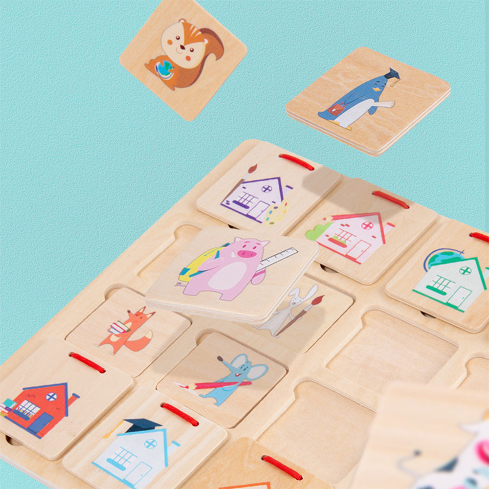 - Copilul caută „casa” potrivită pentru fiecare animal, ghidându-se după elementele ilustrate.