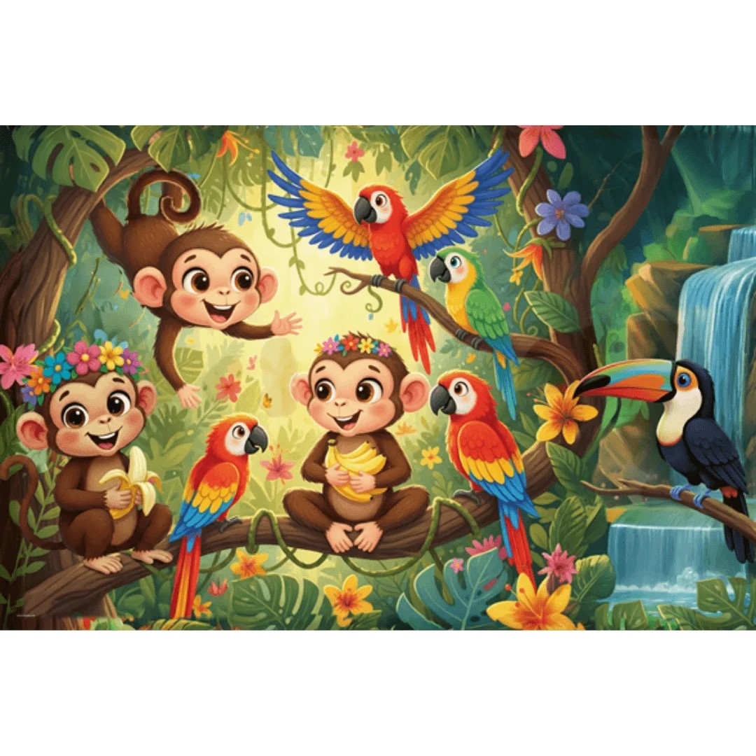Ilustrația veselă, cu maimuțele și prietenii lor exotici, captează imediat interesul celor mici și îi încurajează să descopere imaginea pas cu pas. Brandul Trefl este recunoscut pentru calitatea pieselor, îmbinarea precisă și materialele sigure, potrivite pentru copii.