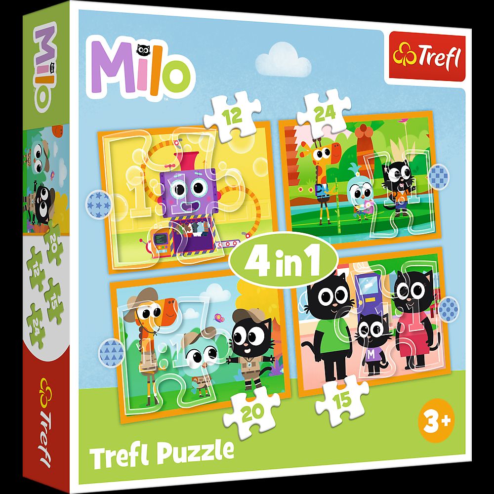 Descriere PUZZLE TREFL 4IN1 PLANETA MILO INTALNIRE