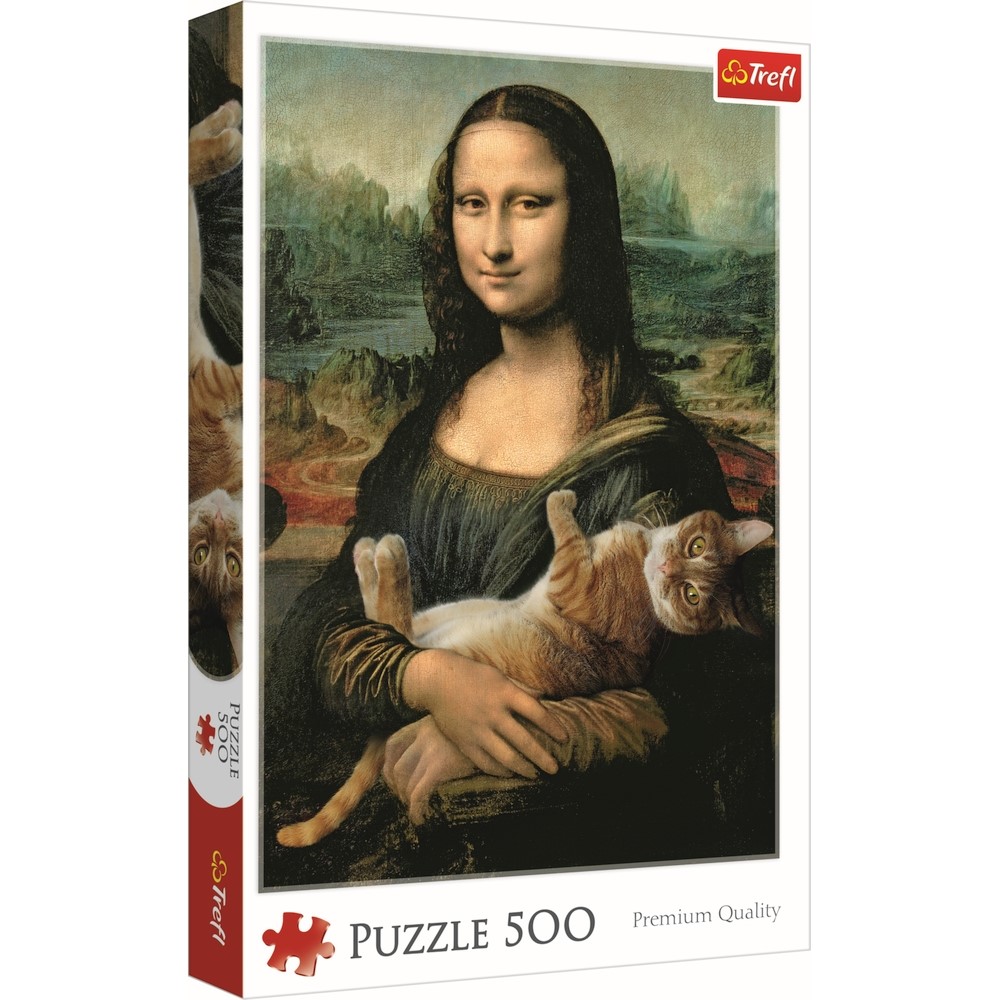 Puzzle Trefl 500 piese Mona Lisa cu pisică, multicolor, 10+ ani