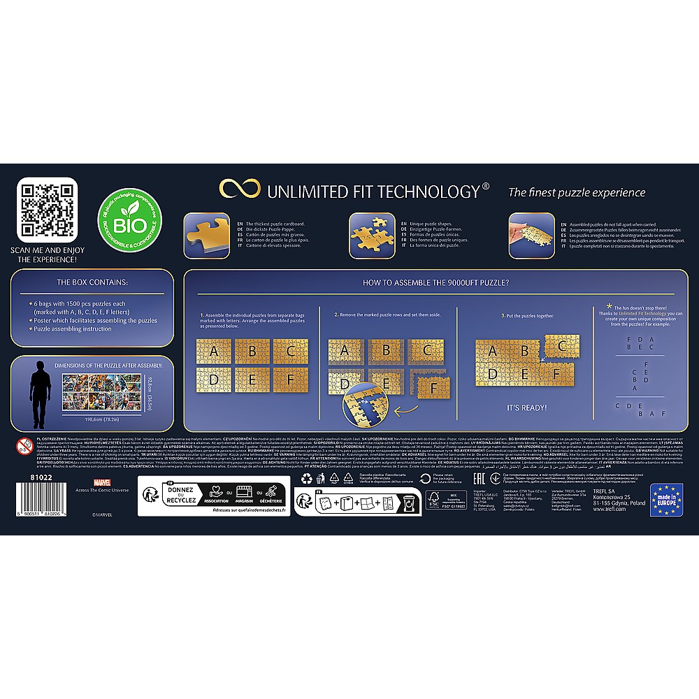 Transforma timpul liber intr-o provocare spectaculoasa cu acest puzzle Trefl Prime UFT 9000 piese cu tema Marvel Avengers. Setul este perfect pentru pasionatii de puzzle-uri mari, pentru fanii universului Marvel si pentru cei care cauta o activitate relaxanta, dar captivanta. Datorita tehnologiei UFT - Unlimited Fit Technology, cele 6 puzzle-uri pot fi combinate intr-o imagine gigantica sau in propriile tale configuratii creative.