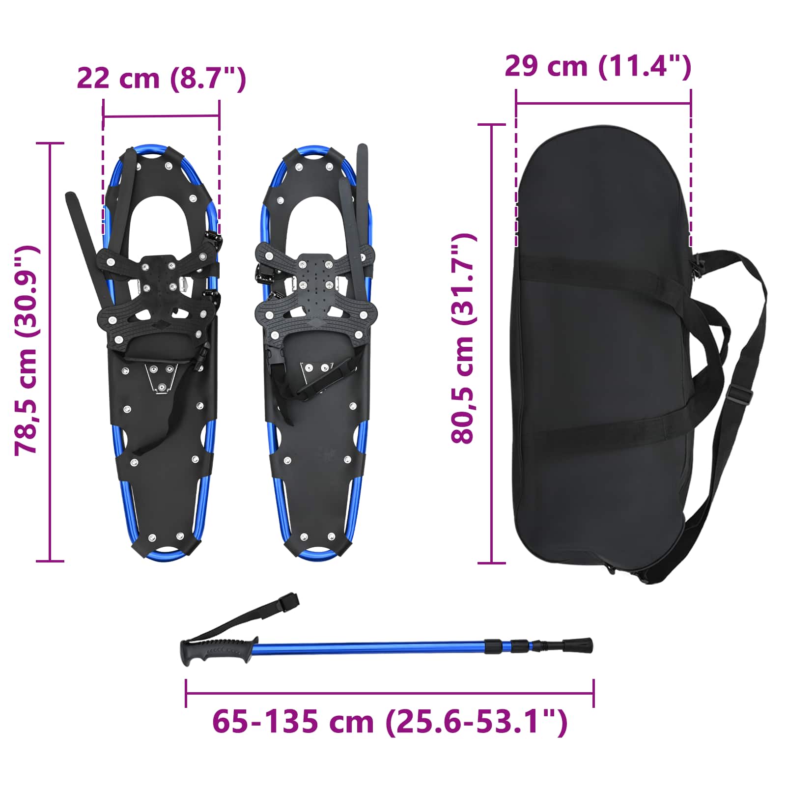 Rachete de zăpadă 3 în 1 cu bastoane de drumeție 30 inci GartenMobel Dekor