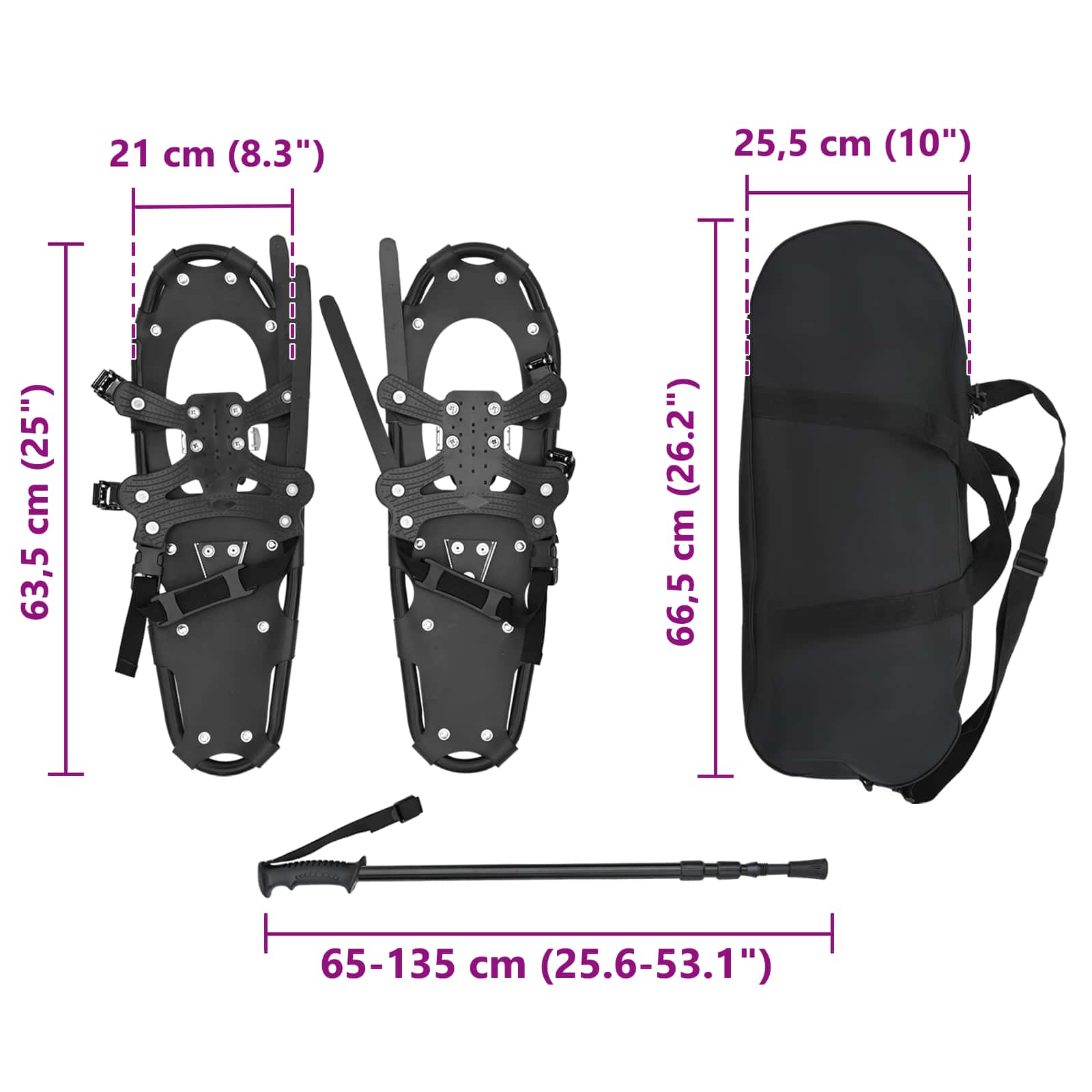 Rachete de zăpadă 3 în 1 cu bastoane de drumeție Negru 25 inci GartenMobel Dekor