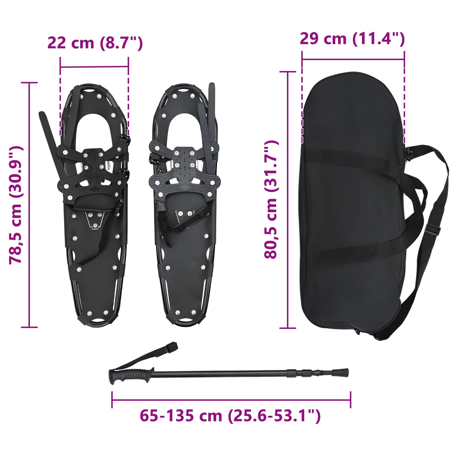Rachete de zăpadă 3 în 1 cu bastoane de drumeție Negru 30 inci GartenMobel Dekor