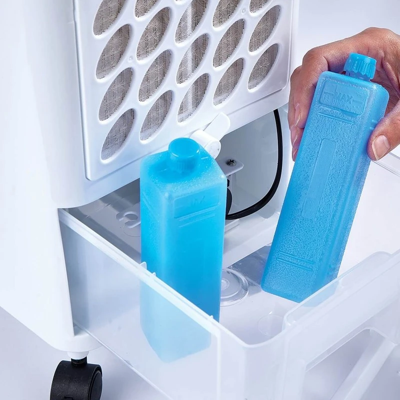Rezervorul are o capacitate de 3L asigurand o autonomie generoasa, iar padul de racire si casetele de gheata imbunatatesc performanta de racire. Un alt avantaj este posibilitatea de a detasa si schimba periodic filamentul pentru evaporare, mentinand astfel calitatea aerului din incapere.