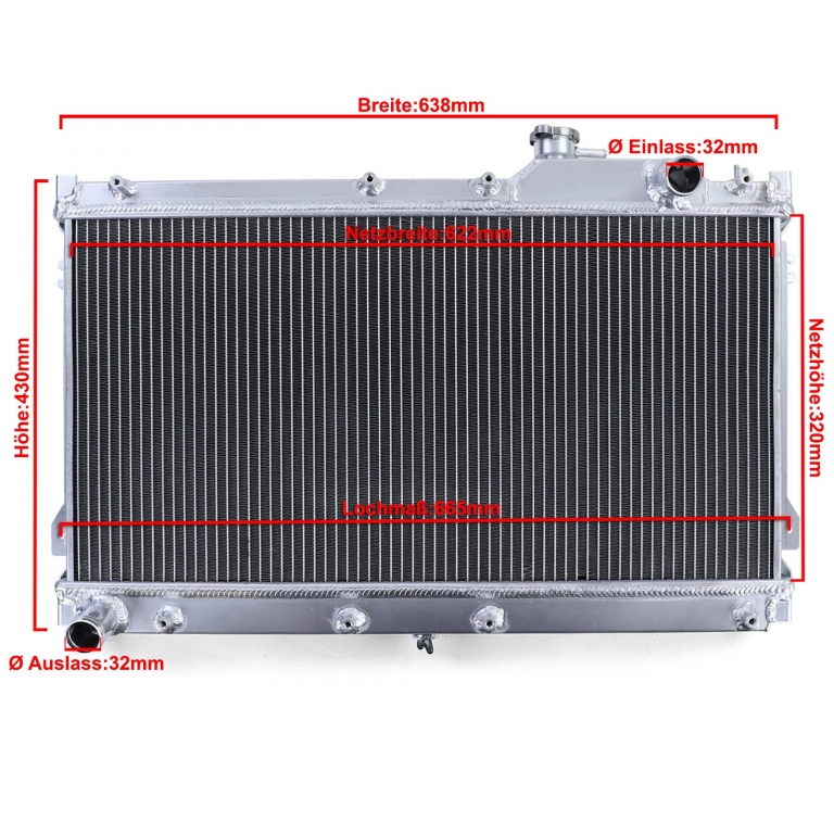 Răcitor de apă din aluminiuPERFORMANȚĂDimensiuni nucleu:622mm x 320mm x 55mm- Optimal pentru utilizare în curse și pe stradă- Performanță de răcire foarte ridicată datorită suprafeței mari de răcire și nucleului de răcire special- Acest lucru duce la o răcire mai bună a motorului și reduce riscul de supraîncălzire- Ideal pentru motoare cu sarcini termice ridicate,cum ar fi în motorsport sau motoare turbo- Lucru de înaltă calitate- Sudat manual- Răcitorul de apă original poate fi înlocuit directNou și ambalat originalMazda MX5Tip NA(Transmisie manuală)An 05/1990 - 04/1998Informații de siguranță a produsuluiProducător: Carparts-Online GmbHBrauckstr. 47, 58454 WittenContact: info@carparts-online.deInstrucțiuni de siguranță:Avertisment de siguranță a ambalajului:Există un risc de rănire din colțuri ascuțite de hârtie, carton sau folie, precum și din clipsuri metalice ascuțite.Materialul de ambalare nu este un joc. Risc de sufocare pentru copii sau animale.Avertisment de siguranță a produsului:Articolul poate avea margini ascuțite. Risc de rănireRecomandăm instalarea de către un atelier auto profesionist