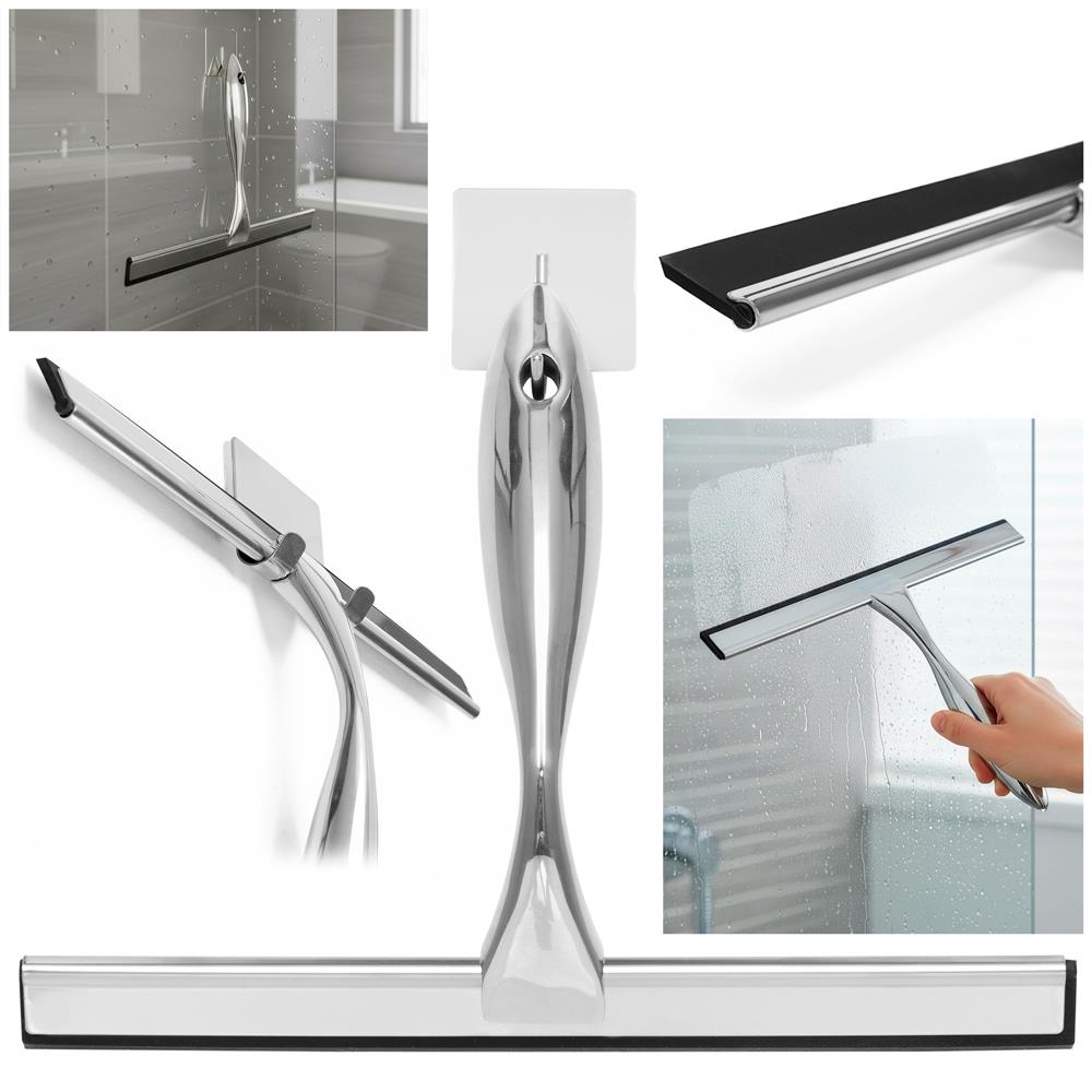 Manerul ergonomic, cu forma curbata, ofera o prindere confortabila si sigura, iar lama lata de 25 cm permite curatarea rapida a unei suprafete mai mari dintr-o singura miscare. Finisajul argintiu lucios si constructia din otel inoxidabil completeaza aspectul modern si elegant, potrivit pentru majoritatea bailor contemporane.