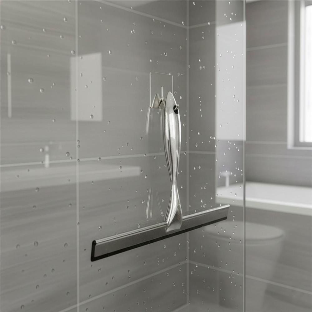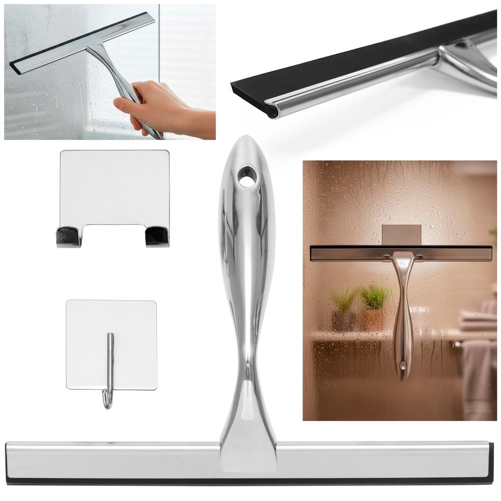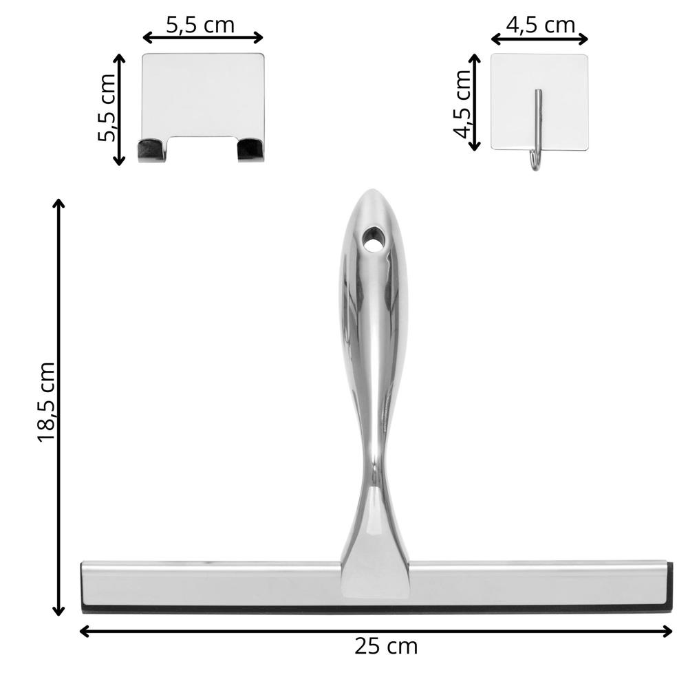 Racleta pentru baie din inox cu suport adeziv, lama 25 cm, finisaj lucios argintiu Household NewTrend