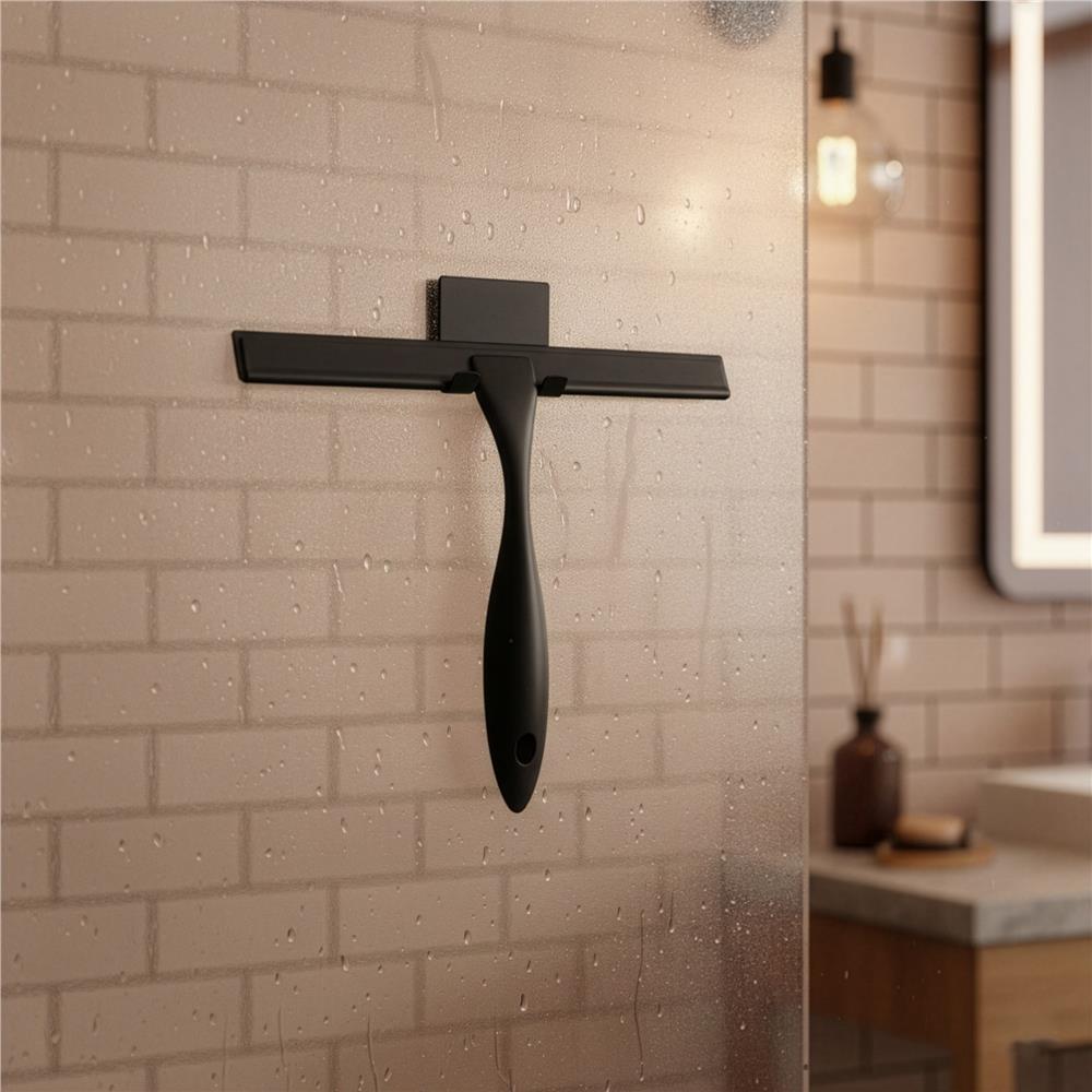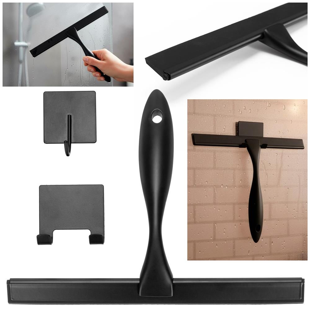 Racleta pentru baie din inox cu suport adeziv, lama 25 cm, finisaj mat negru Household NewTrend