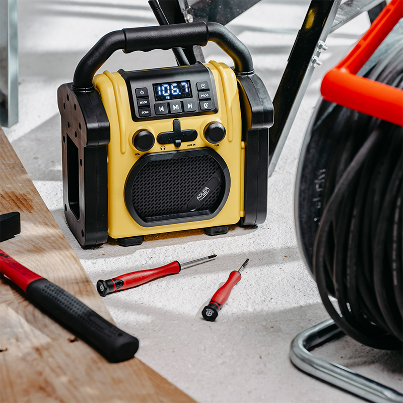 Radioul de santier Adler AD 1911 este conceput pentru cei care au nevoie de divertisment și conectivitate de încredere în medii solicitante. Indiferent dacă vă aflați pe un șantier de construcții sau vă bucurați de aer liber, acest radio combină durabilitatea cu funcții avansate pentru a oferi performanțe excelente.