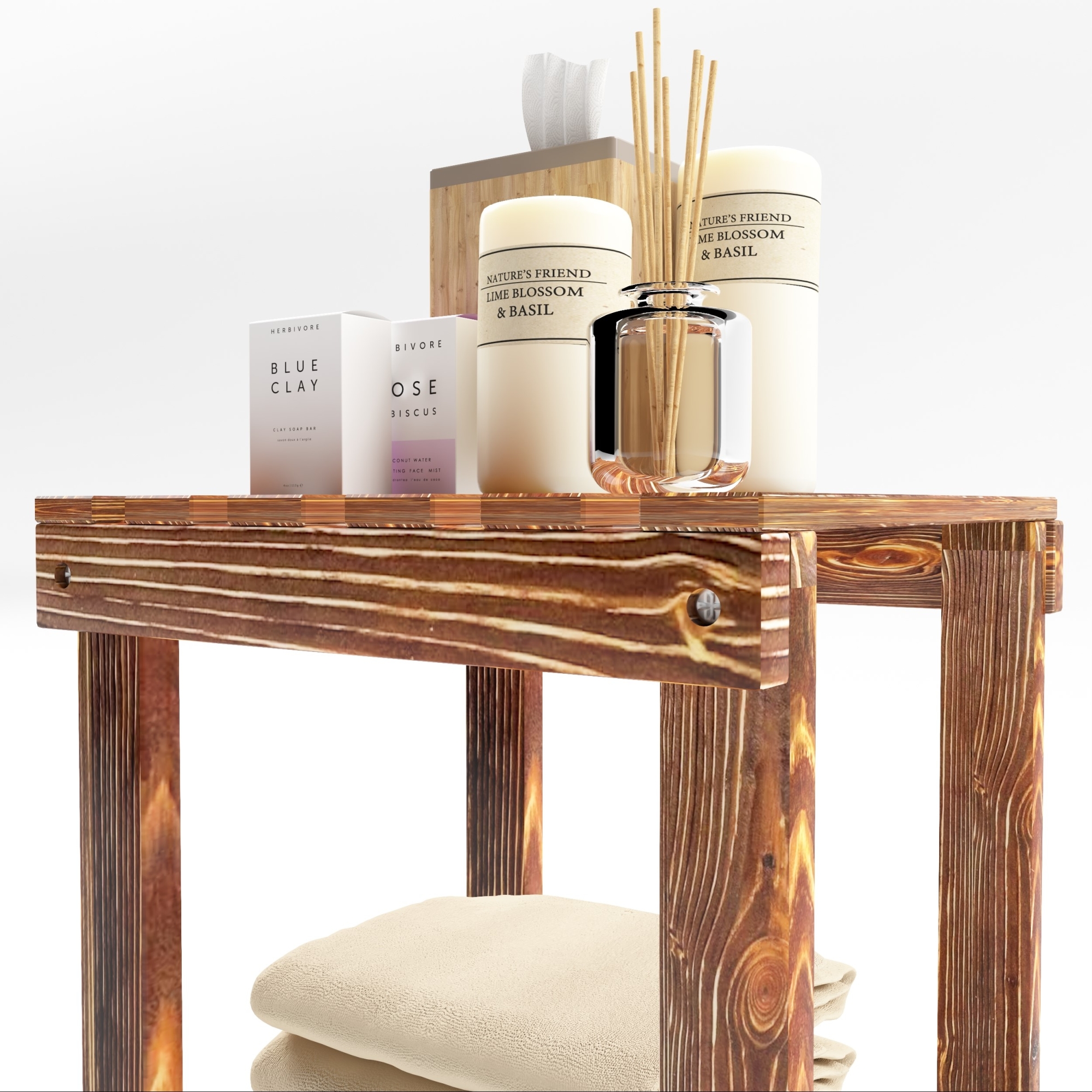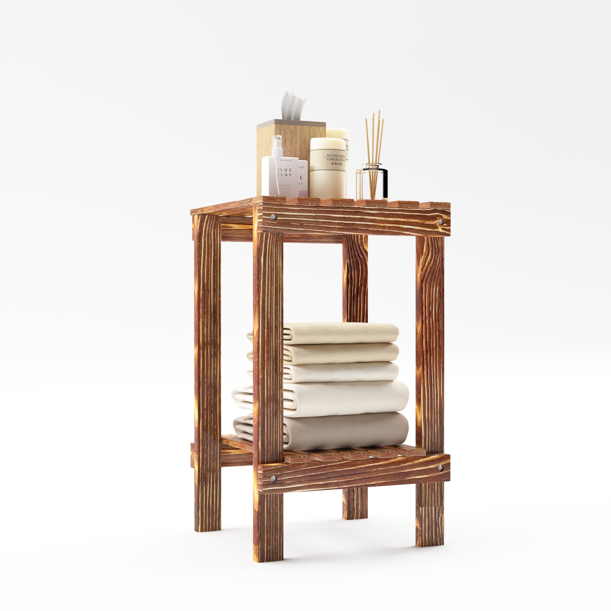 Raft baie Kinnula 50x30x30cm brad vopsit lemn ton inchis cu 2 polite [en.casa] HausGarden Leisure