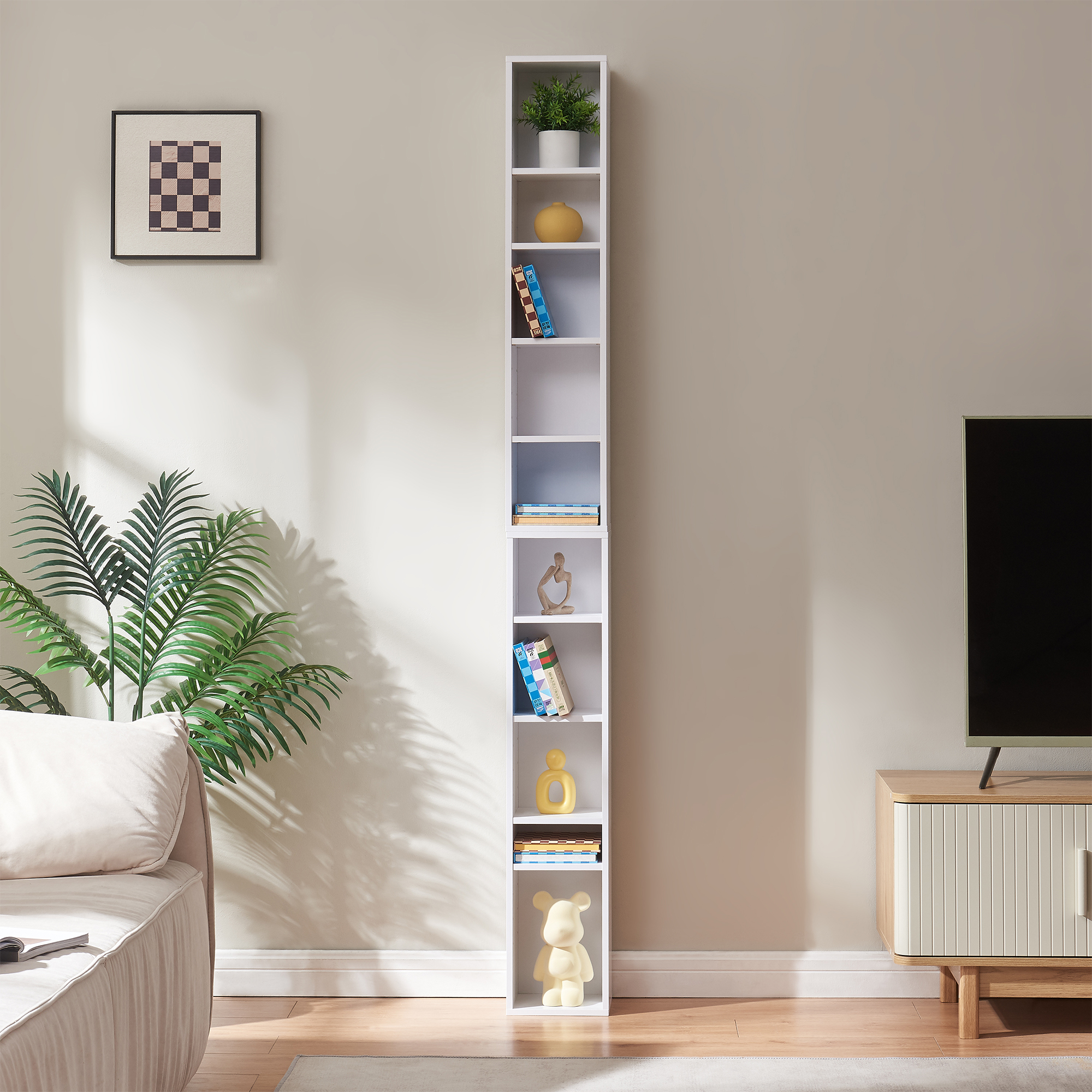 Datorită celor 10 compartimente deschise, ai la dispoziție spațiu bine structurat pentru depozitare și acces rapid la obiectele preferate. Polițele reglabile pe înălțime îți oferă flexibilitate în amenajare, astfel încât să adaptezi raftul în funcție de nevoile tale. În plus, finisajul alb contribuie la un aspect luminos și modern, potrivit în decoruri contemporane.