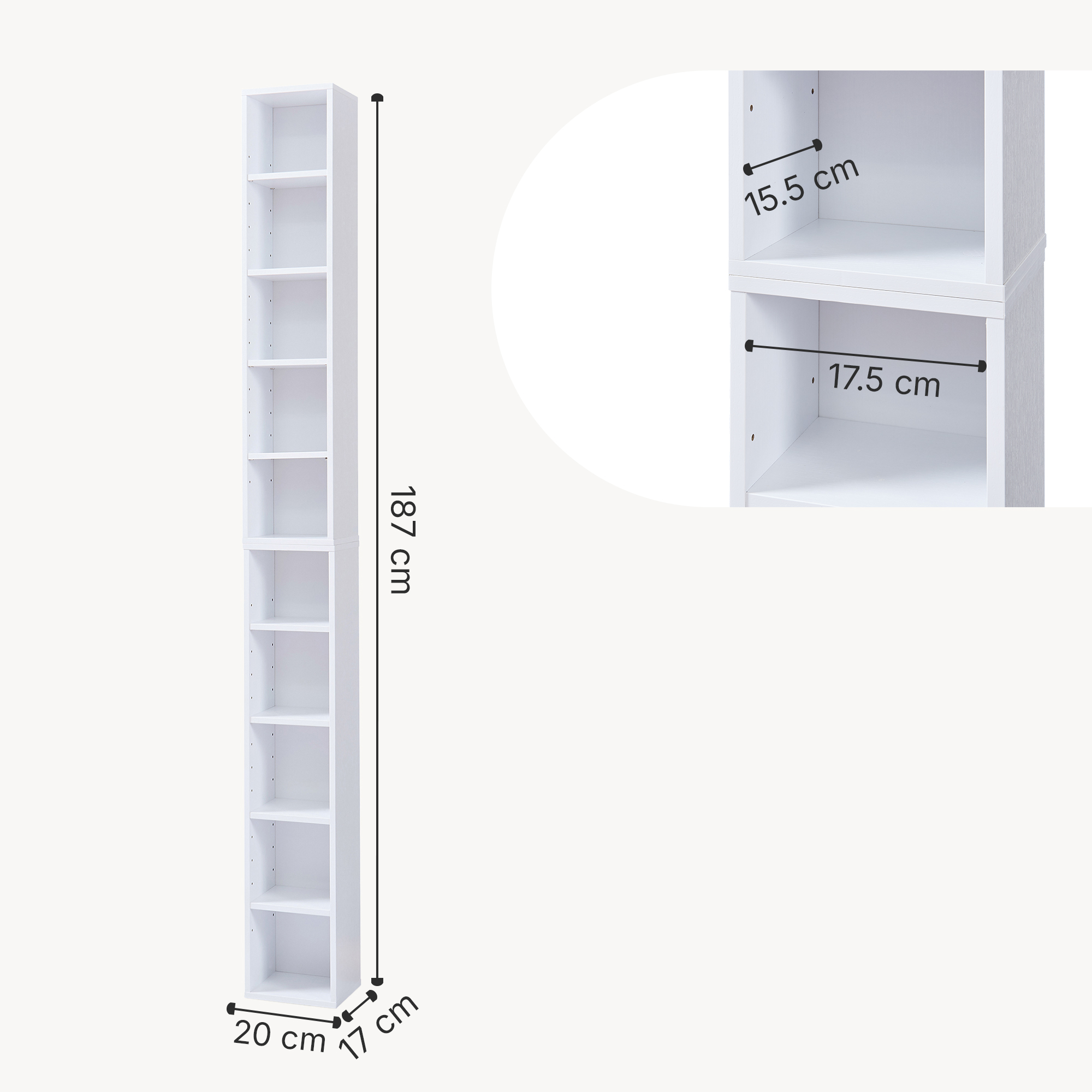 Raft CD Tynset alb cu 10 compartimente reglabile, 187x20x17 cm
