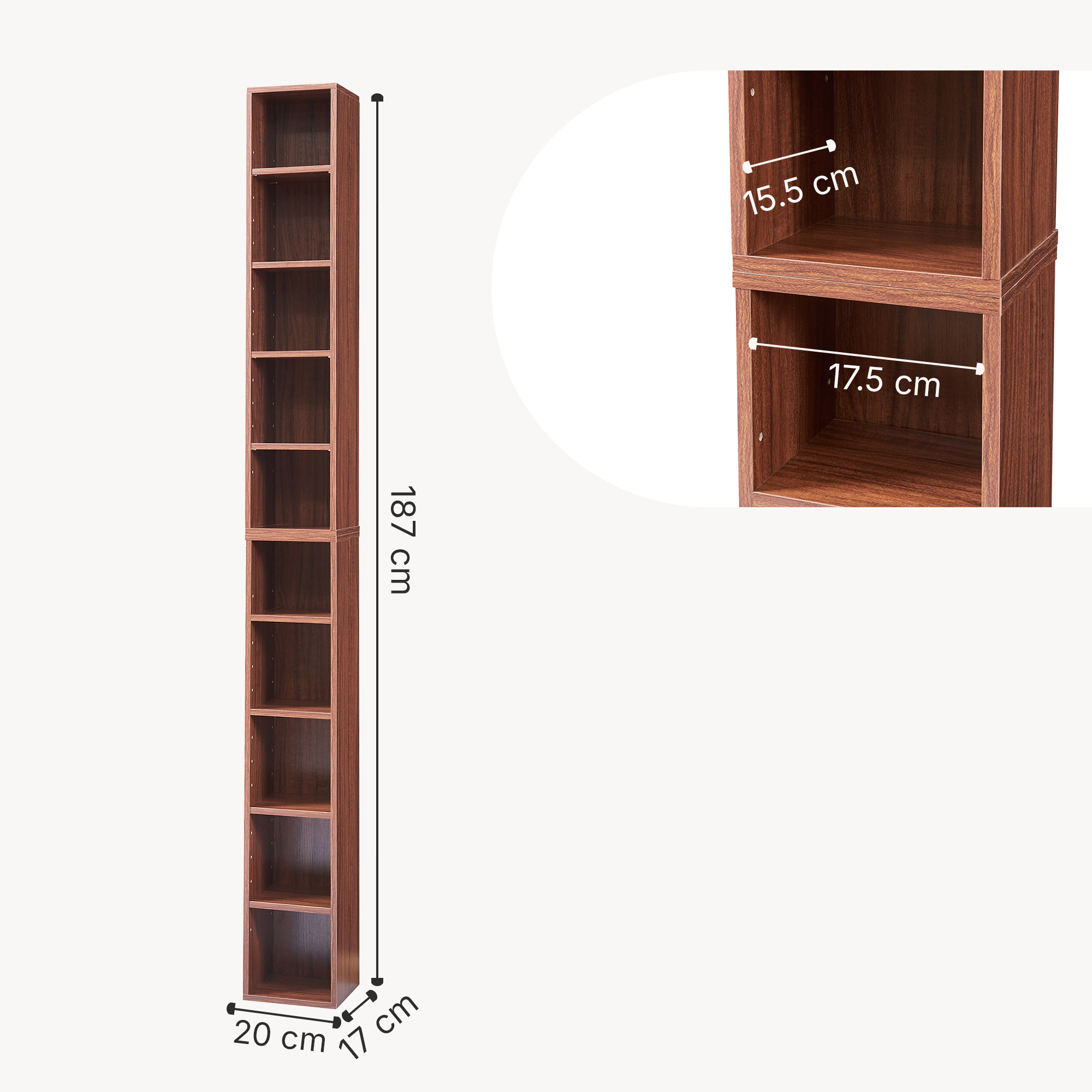Raft CD Tynset cu 10 compartimente, aspect nuc, 187x20x17 cm