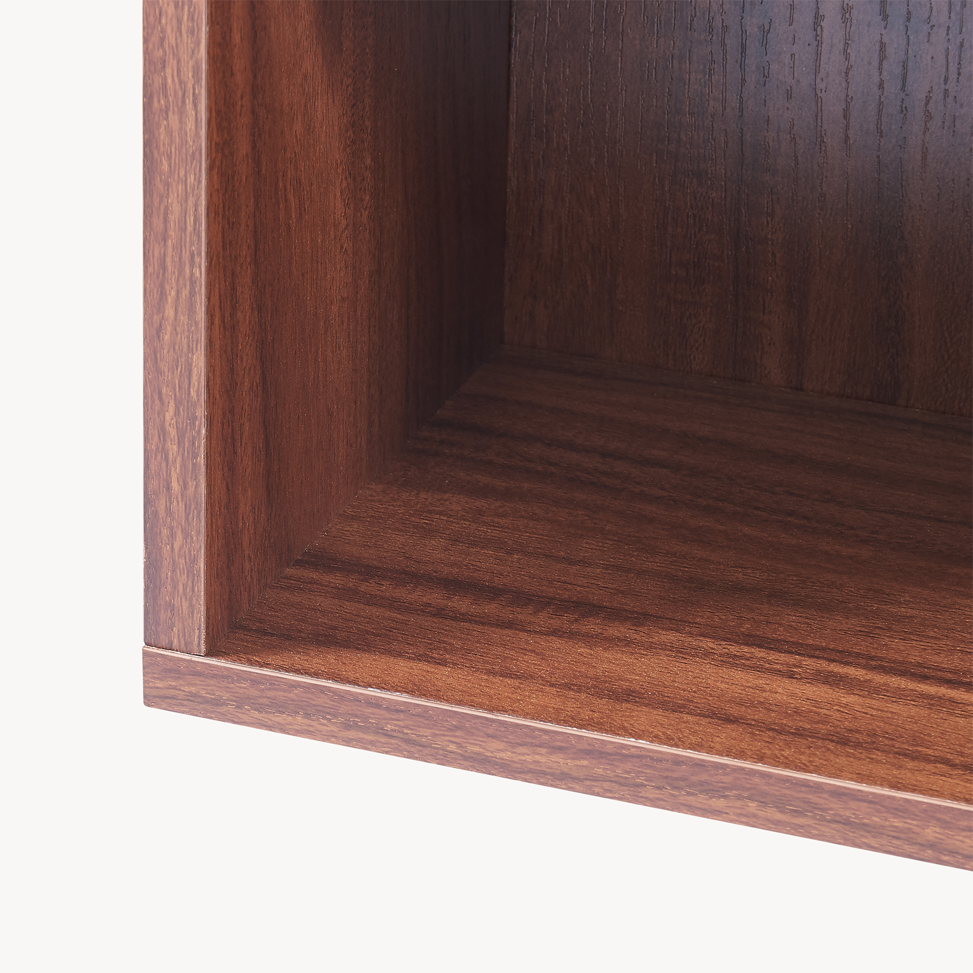 Cele 10 compartimente deschise oferă spațiu generos pentru depozitare, iar polițele reglabile pe înălțime îți permit să adaptezi interiorul în funcție de nevoi. Finisajul în nuanță nuc adaugă un plus de căldură și stil, fiind potrivit atât pentru interioare moderne, cât și pentru amenajări clasice.