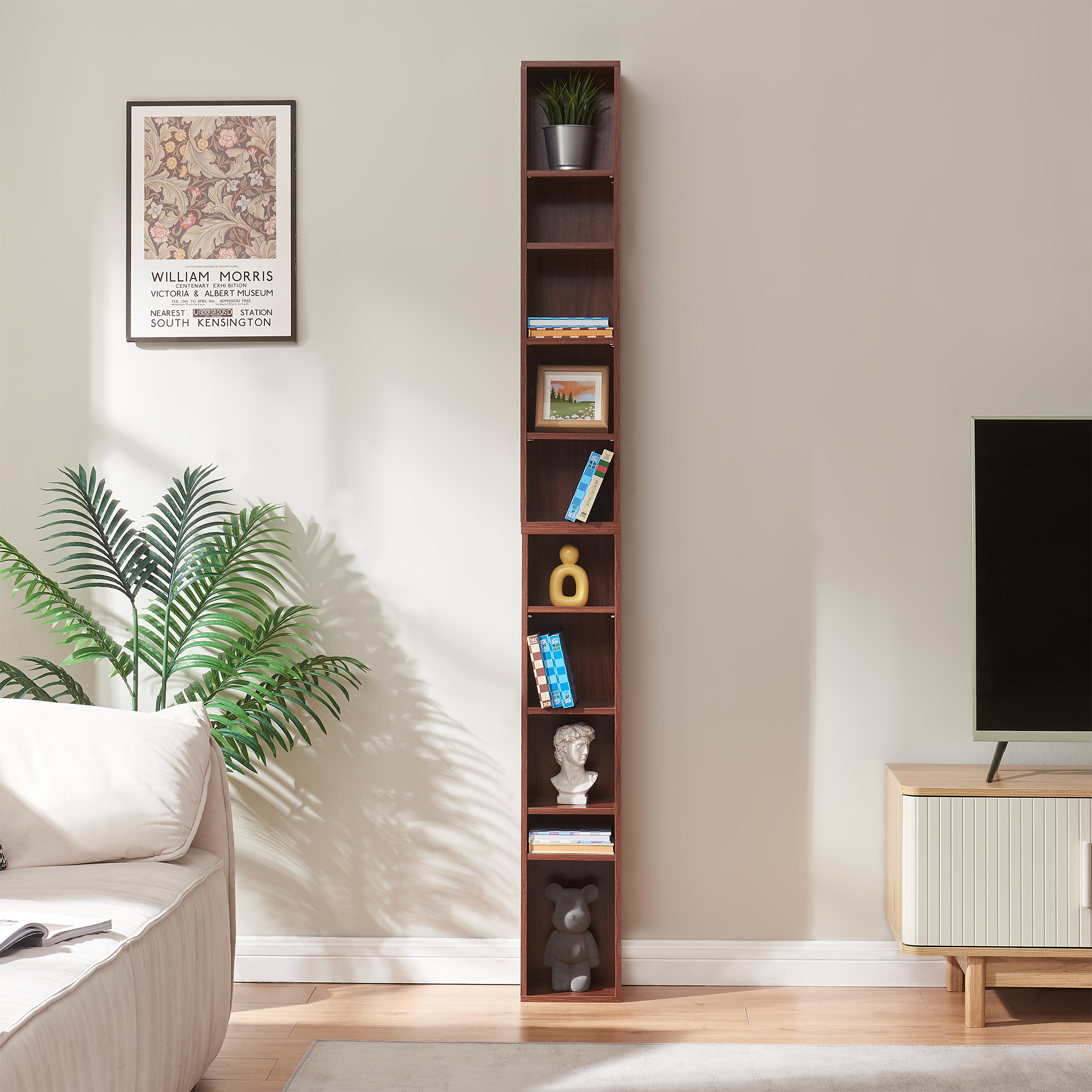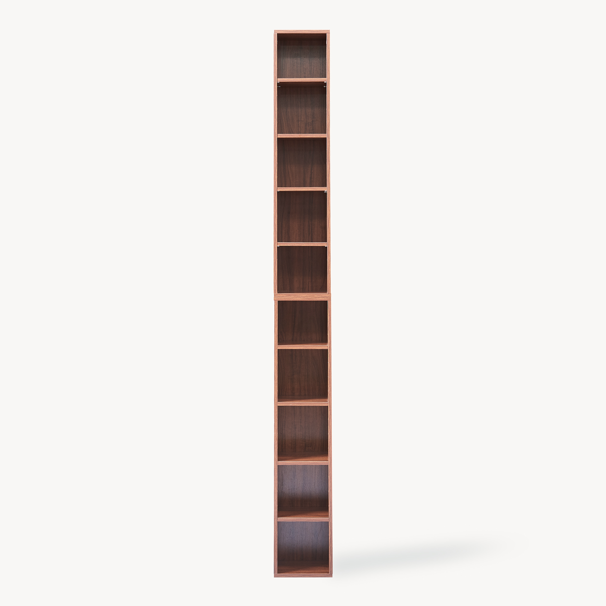 Acest raft îngust de depozitare este excelent pentru colecțiile media, dar poate fi folosit și pentru cărți mici, rame foto, plante decorative sau accesorii. Datorită construcției sale compacte, valorifică eficient spațiul pe verticală și te ajută să menții camera aerisită și bine organizată.
