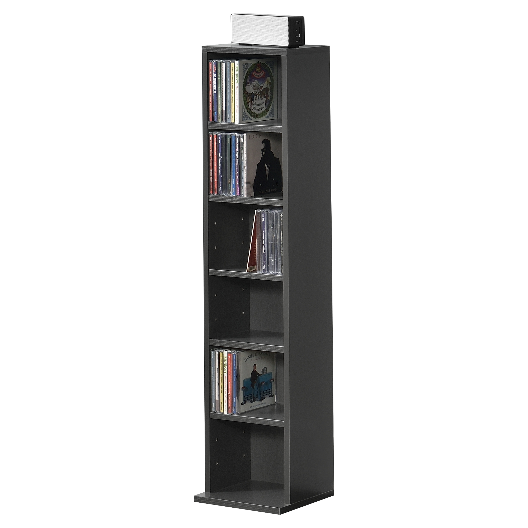 Raft CD Tynset cu 6 compartimente, 90x20x20 cm, gri închis