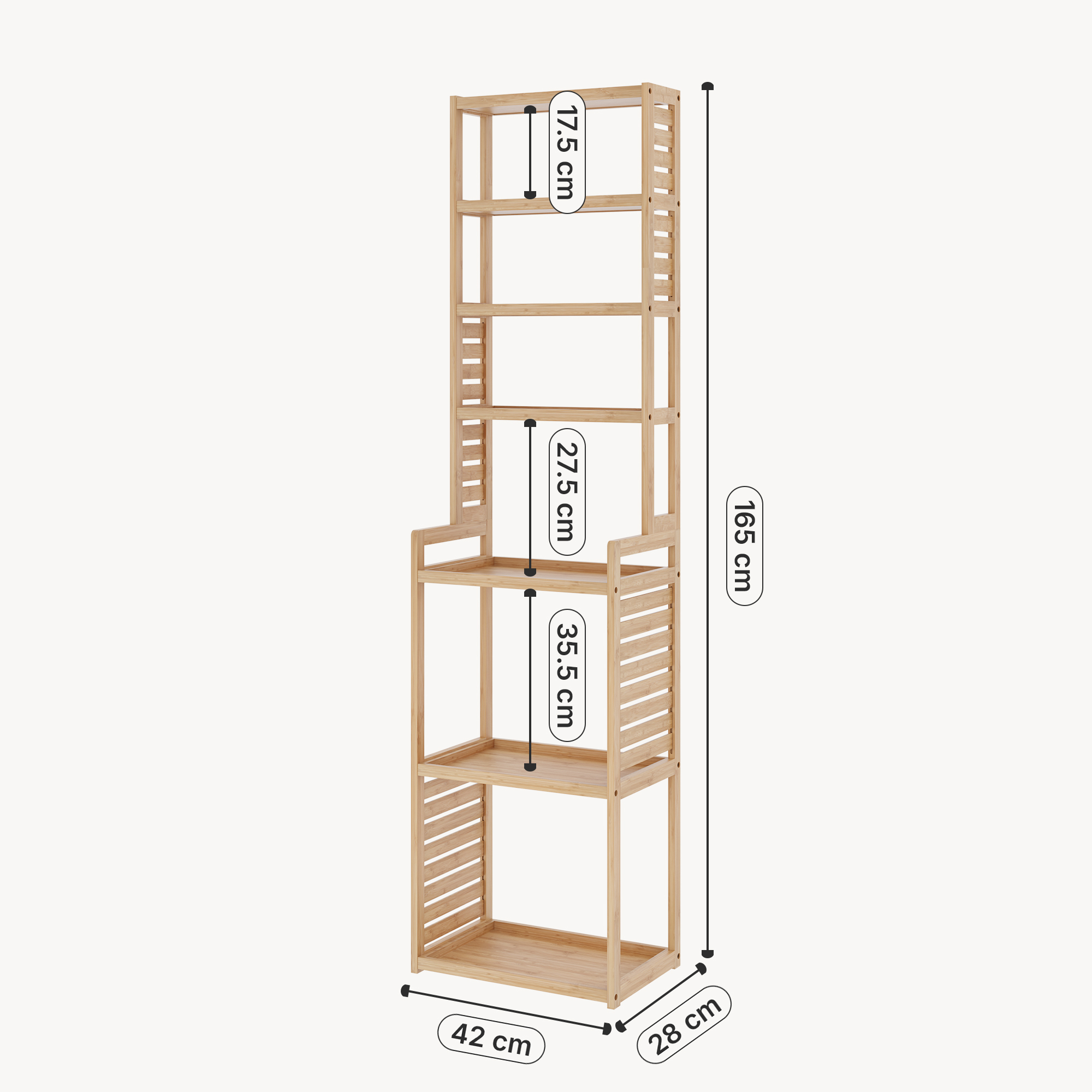 Raft de baie din bambus Forssa cu 7 polițe, 165 x 42 x 28 cm