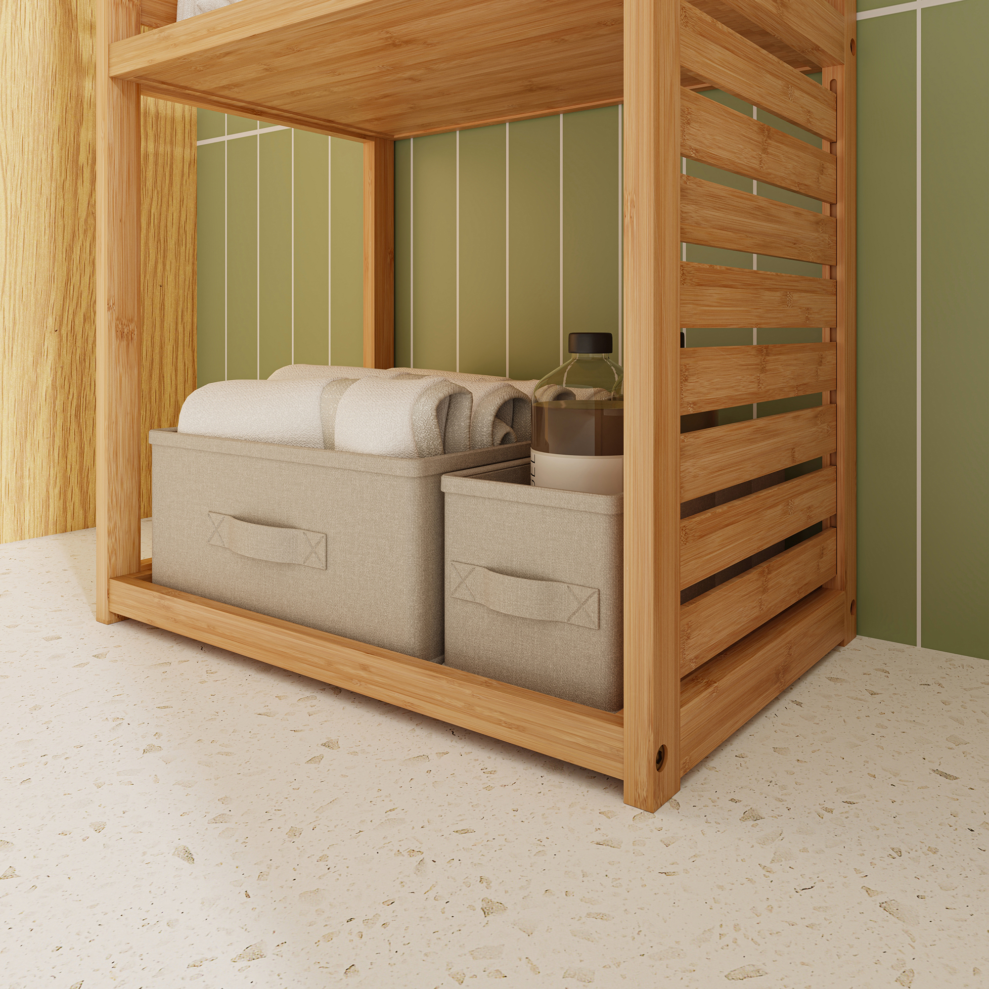 Raftul de baie Forssa este o soluție practică și elegantă pentru organizarea eficientă a spațiului. Cu un design vertical, compact și aspect natural, acest raft din bambus se potrivește perfect în baie, dar poate fi folosit cu succes și în bucătărie, living sau zona de spălătorie.