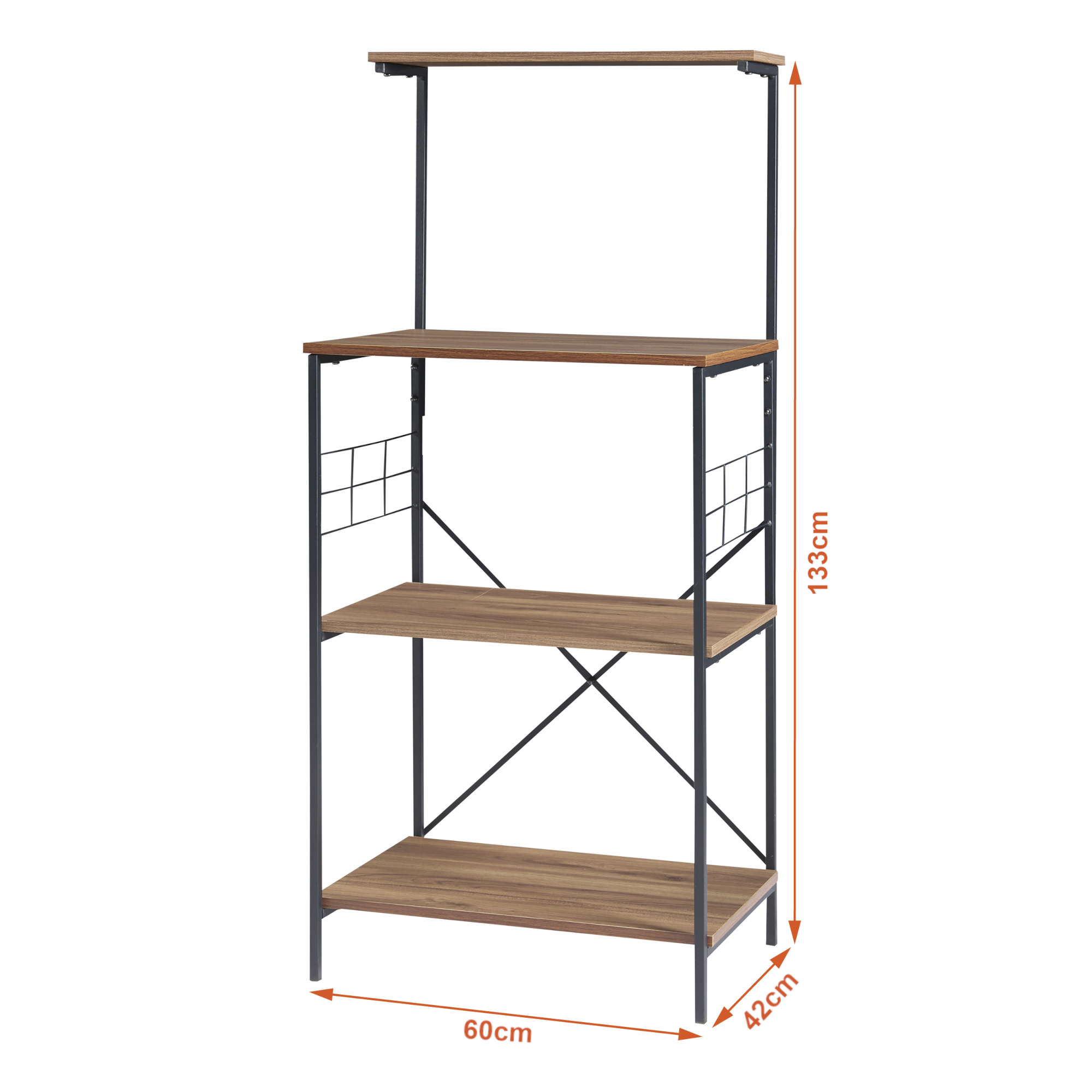 Raft de bucătărie Billund cu 4 polițe este o alegere practică și elegantă pentru organizarea eficientă a spațiului. Cu un design modern, în combinație de negru și finisaj nucă, acest raft de bucătărie oferă loc suficient pentru depozitarea electrocasnicelor și ustensilelor folosite zilnic.