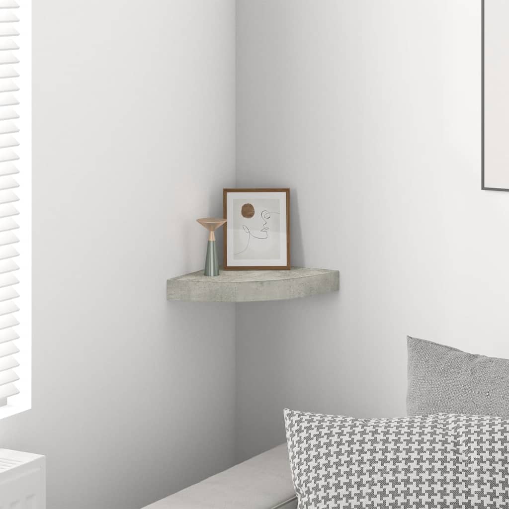 Raft de colț de perete, gri beton, 25x25x3,8 cm, MDF GartenMobel Dekor