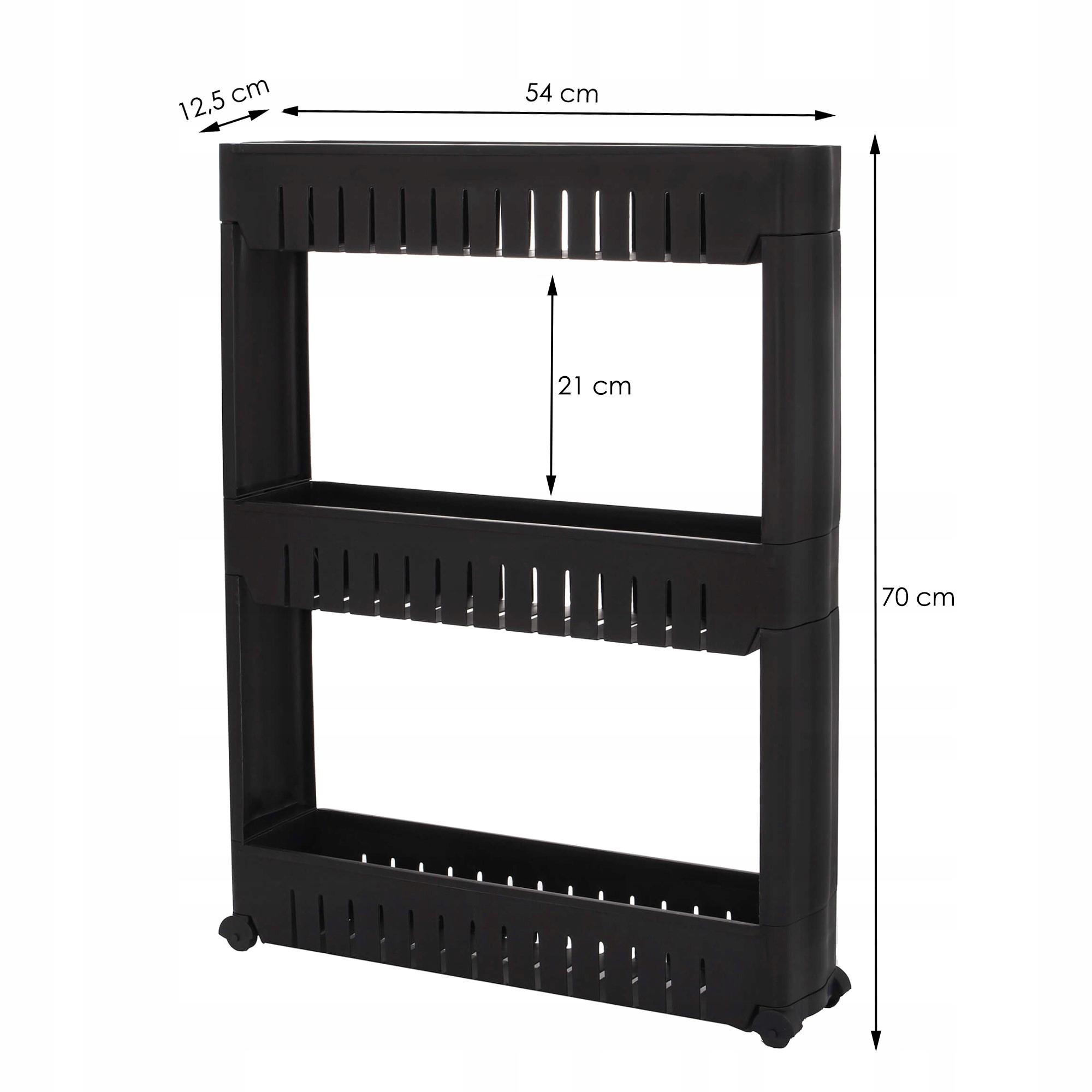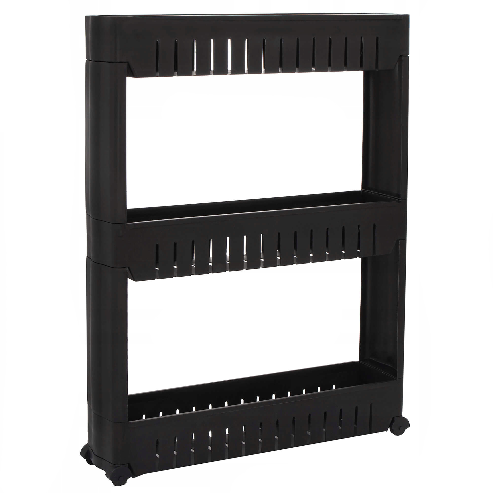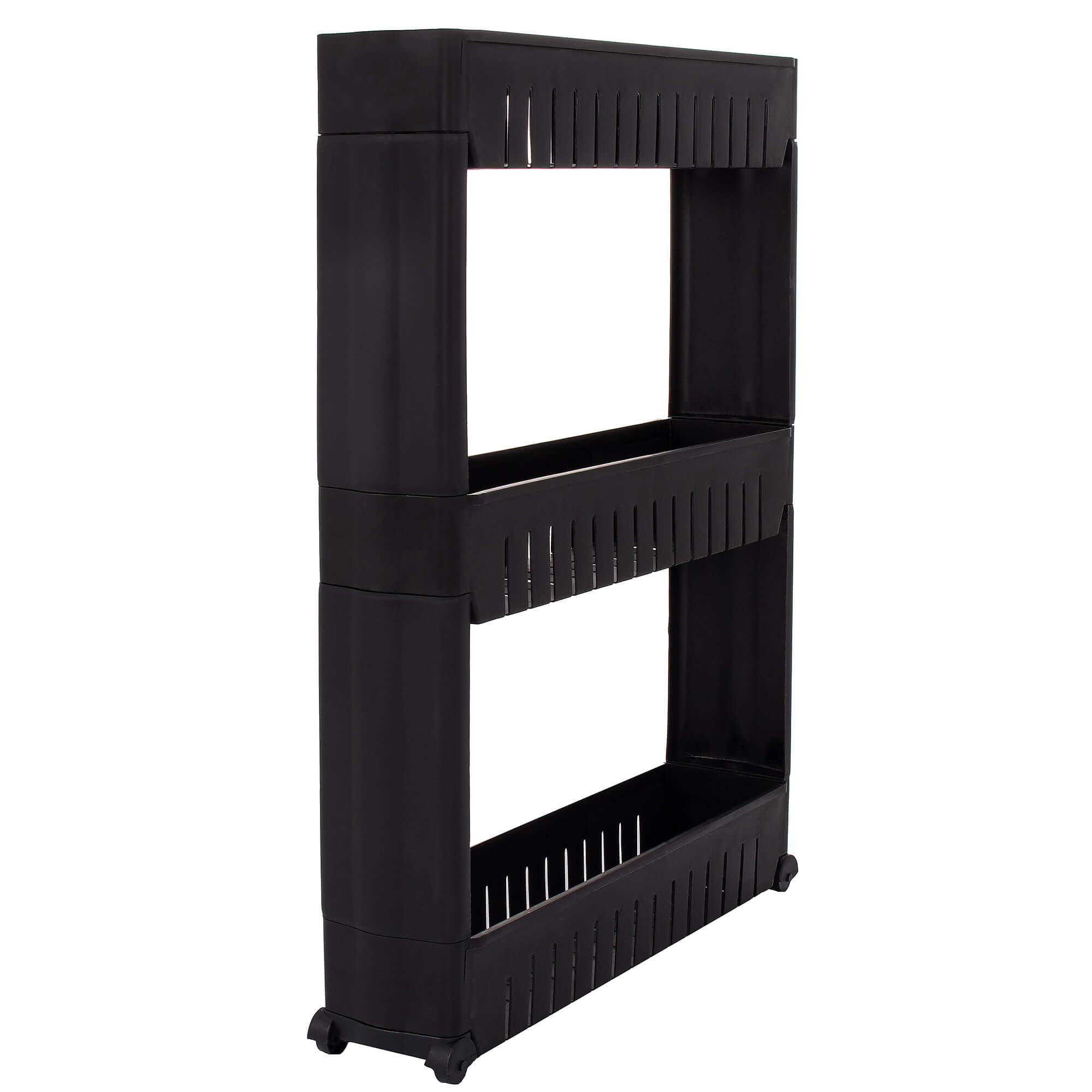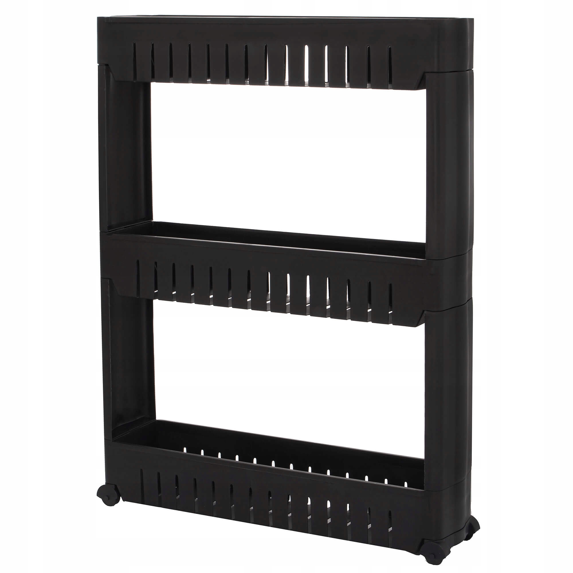 Raft de depozitare îngust cu roți Sersimo HA116, 3 polițe, negru