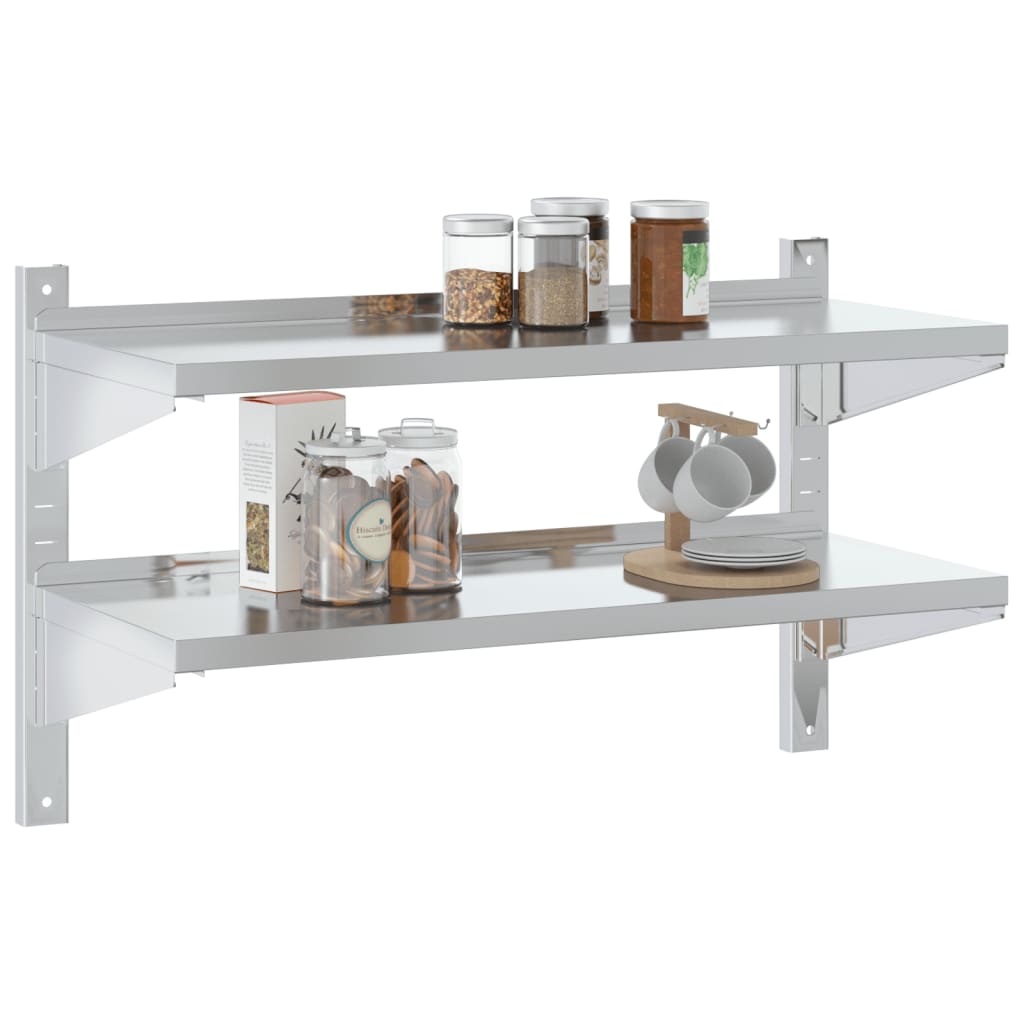 Raft de perete 2 niveluri 100x40x60 cm argintiu oțel inoxidabil GartenMobel Dekor