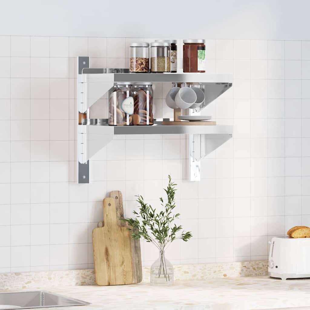 Raft de perete 2 niveluri 50x30x48 cm argintiu oțel inoxidabil GartenMobel Dekor