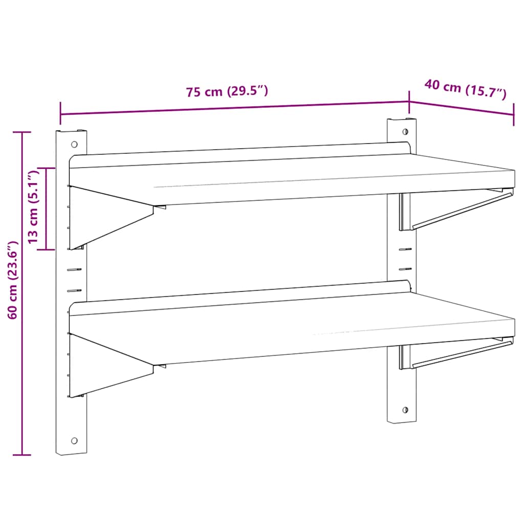Raft de perete 2 niveluri 75x40x60 cm argintiu oțel inoxidabil GartenMobel Dekor