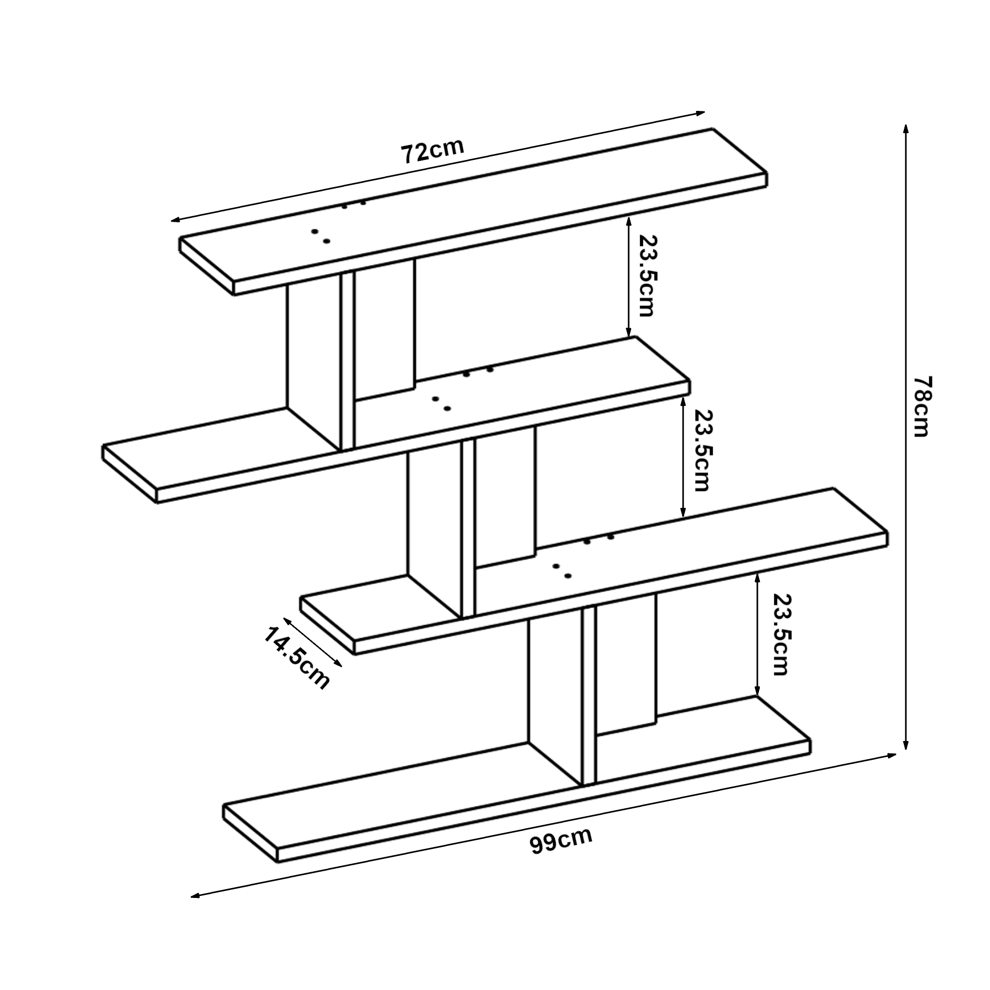 - Distanța între niveluri: 23,5 cm fiecare