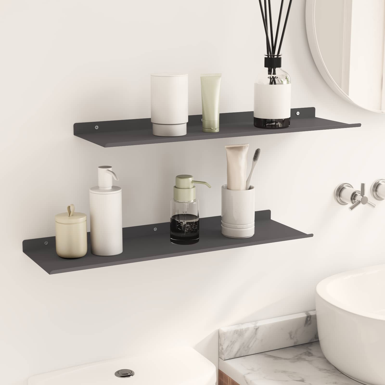 Raft de perete cu raft Pe perete 2 pcs Negru 60 x 18 x 2,5 cm GartenMobel Dekor