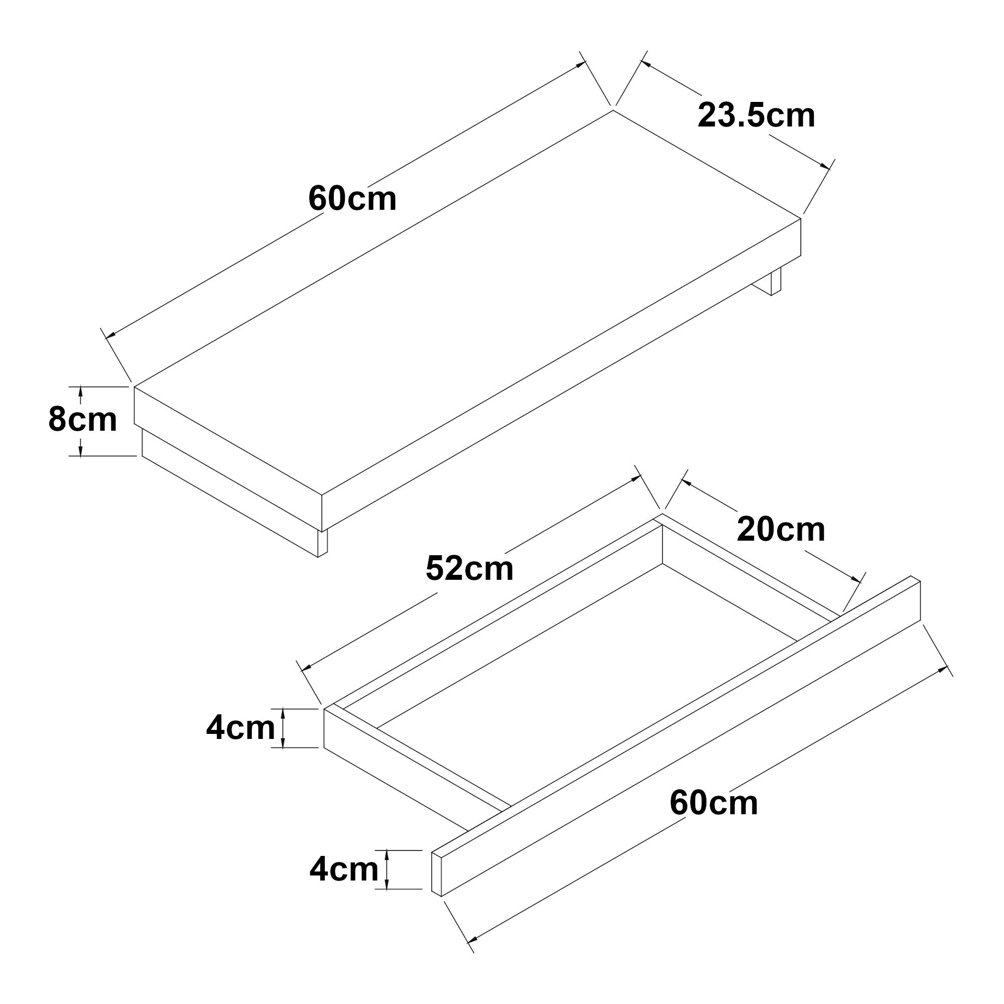 - 60 x 23,5 x 8 cm