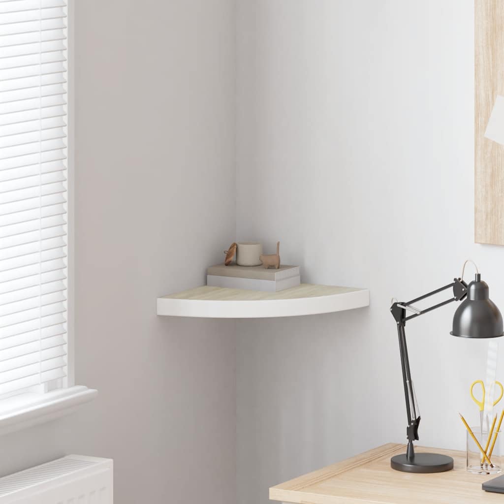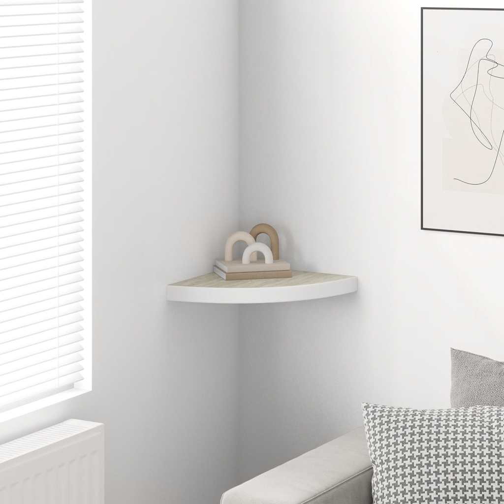 Raft de perete de colț, stejar și alb, 35x35x3,8 cm, MDF GartenMobel Dekor
