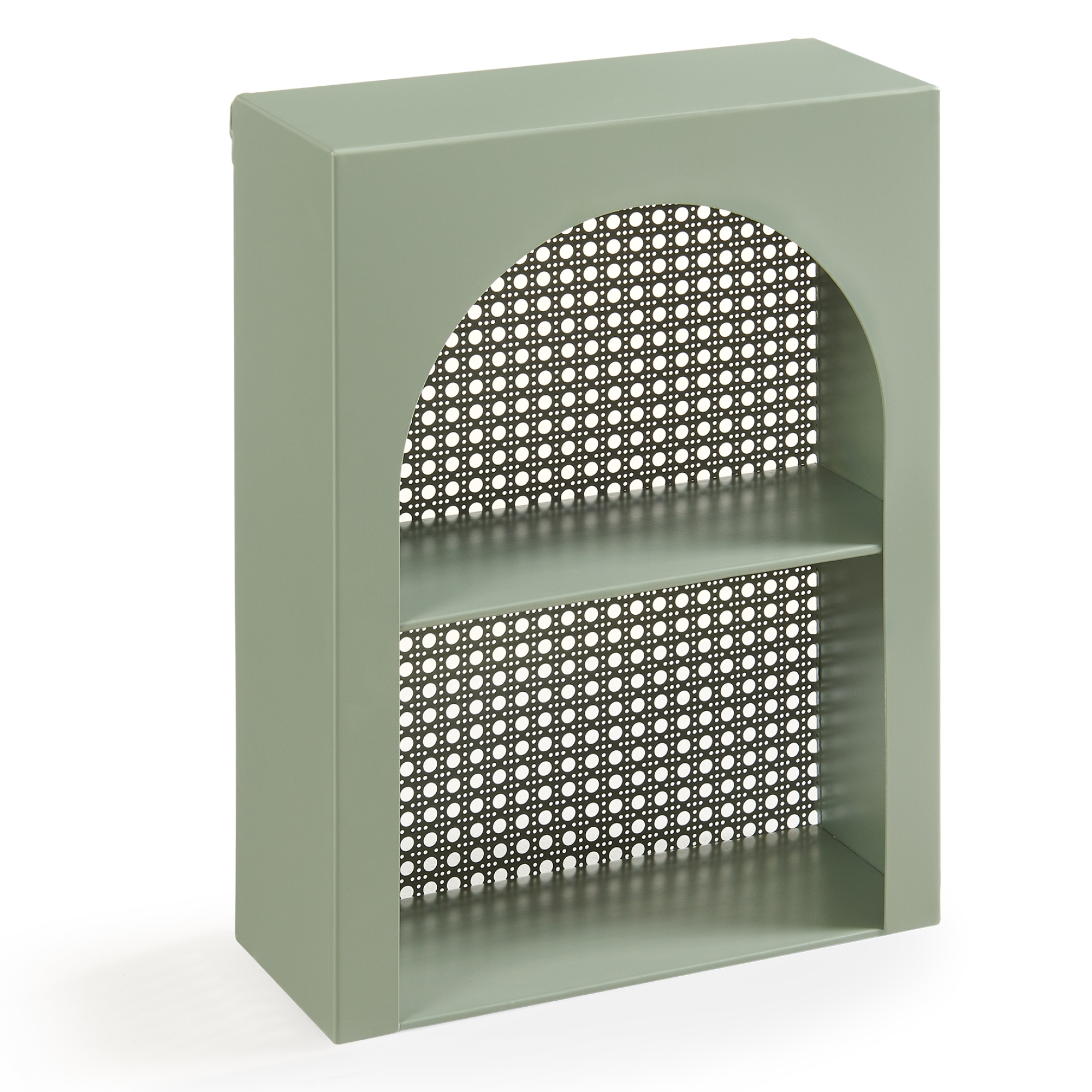 Raft de perete din metal verde cu 2 polițe, 40x30x13 cm, [en.casa]