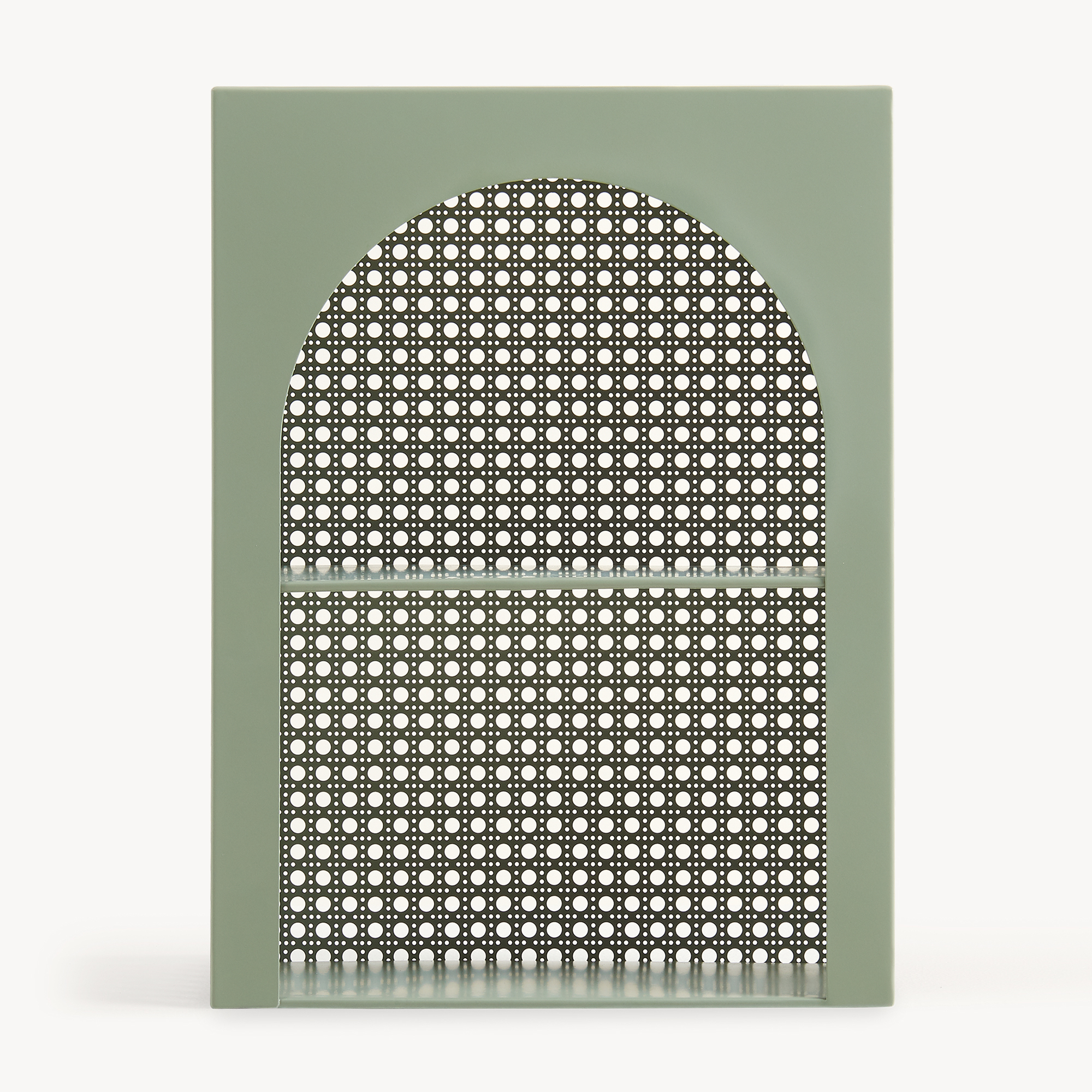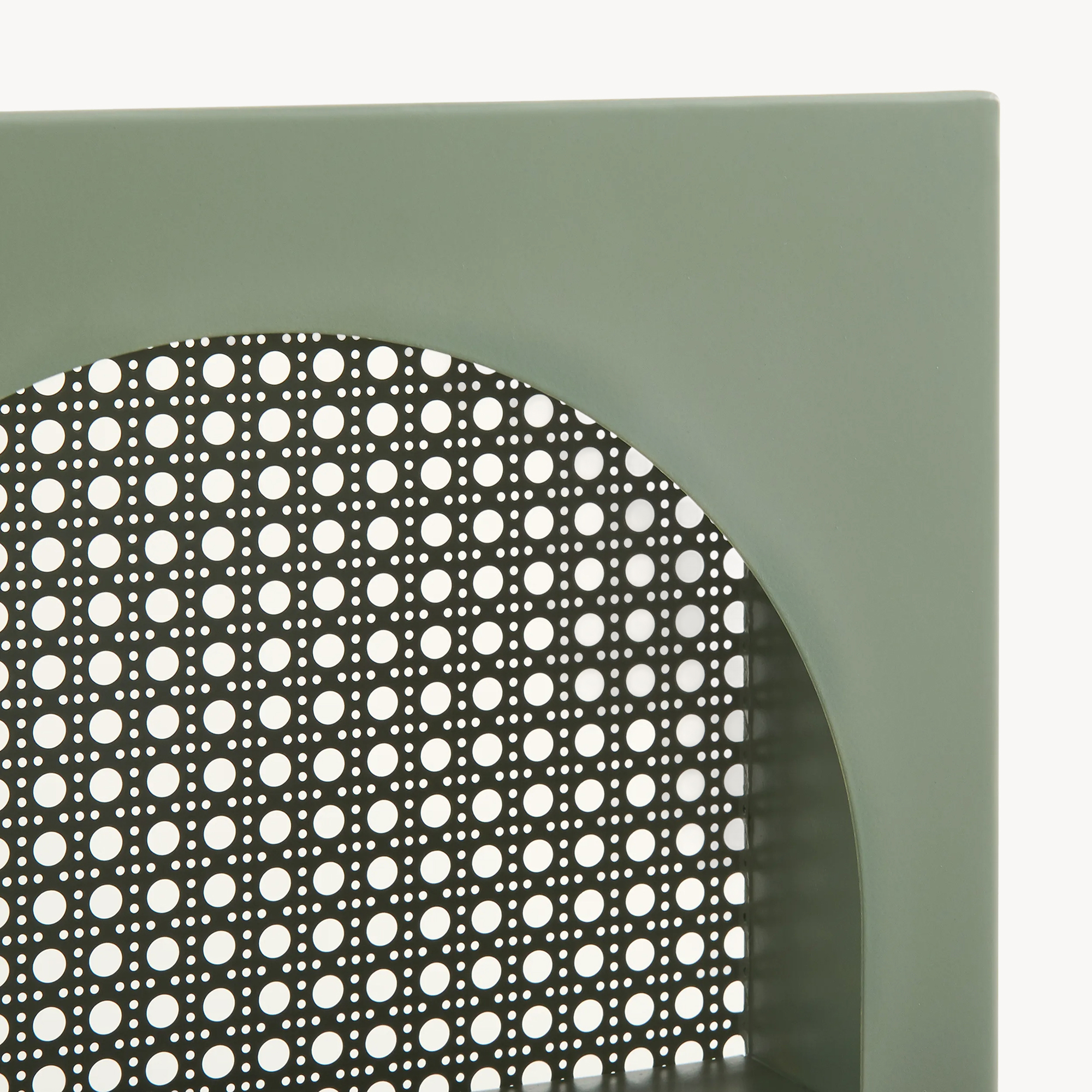 Raftul de perete din metal este o soluție practică și elegantă pentru organizarea casei tale. Cu un design modern, finisaj verde plăcut și decupaj decorativ în arcadă, acest raft de perete verde adaugă stil și funcționalitate în orice încăpere.