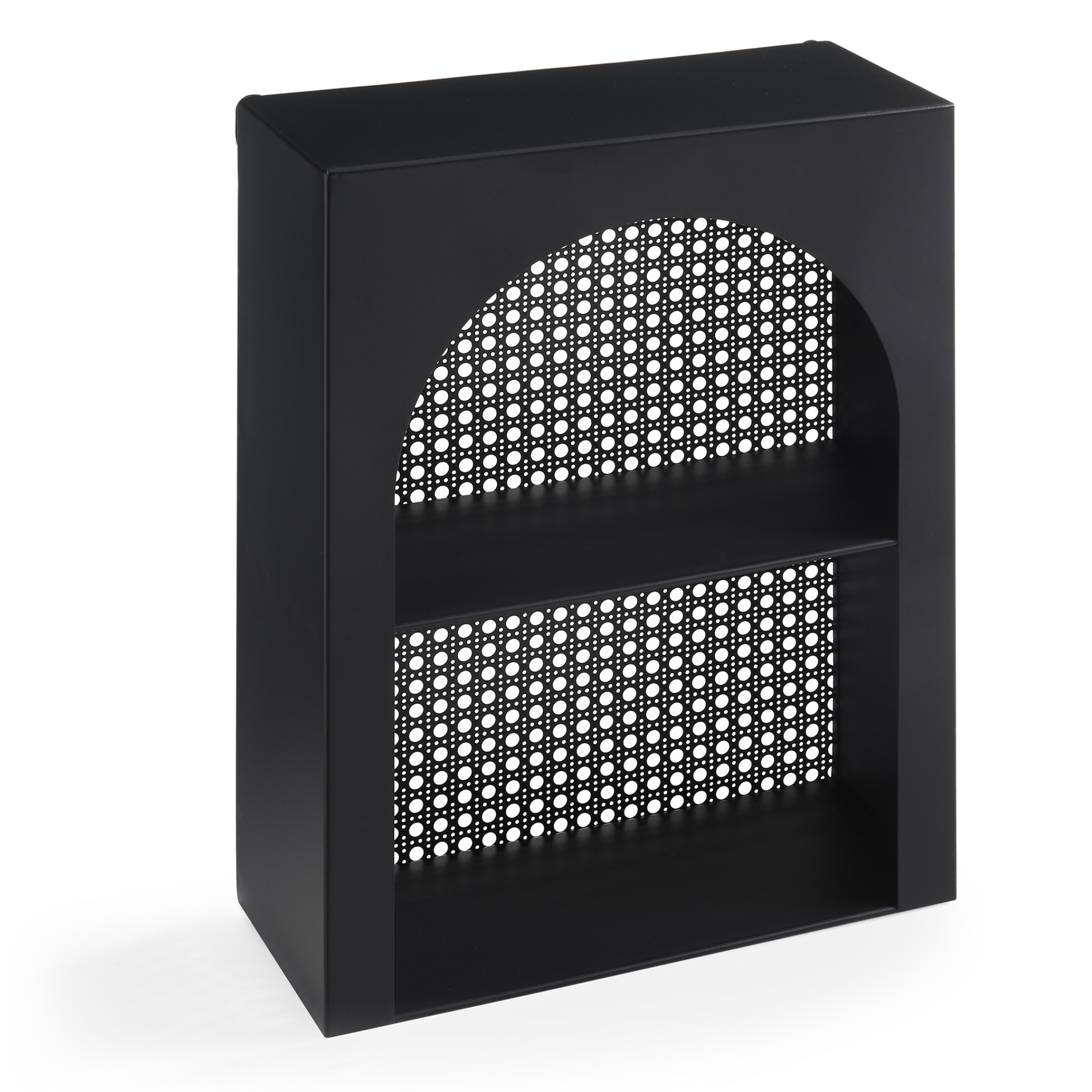 Raftul de perete metalic este alegerea ideală dacă vrei să adaugi un plus de stil și organizare în locuința ta. Cu un design modern, finisaj negru elegant și panou decorativ cu aspect perforat de tip ratan, acest raft de perete se integrează ușor în living, bucătărie, baie sau hol.