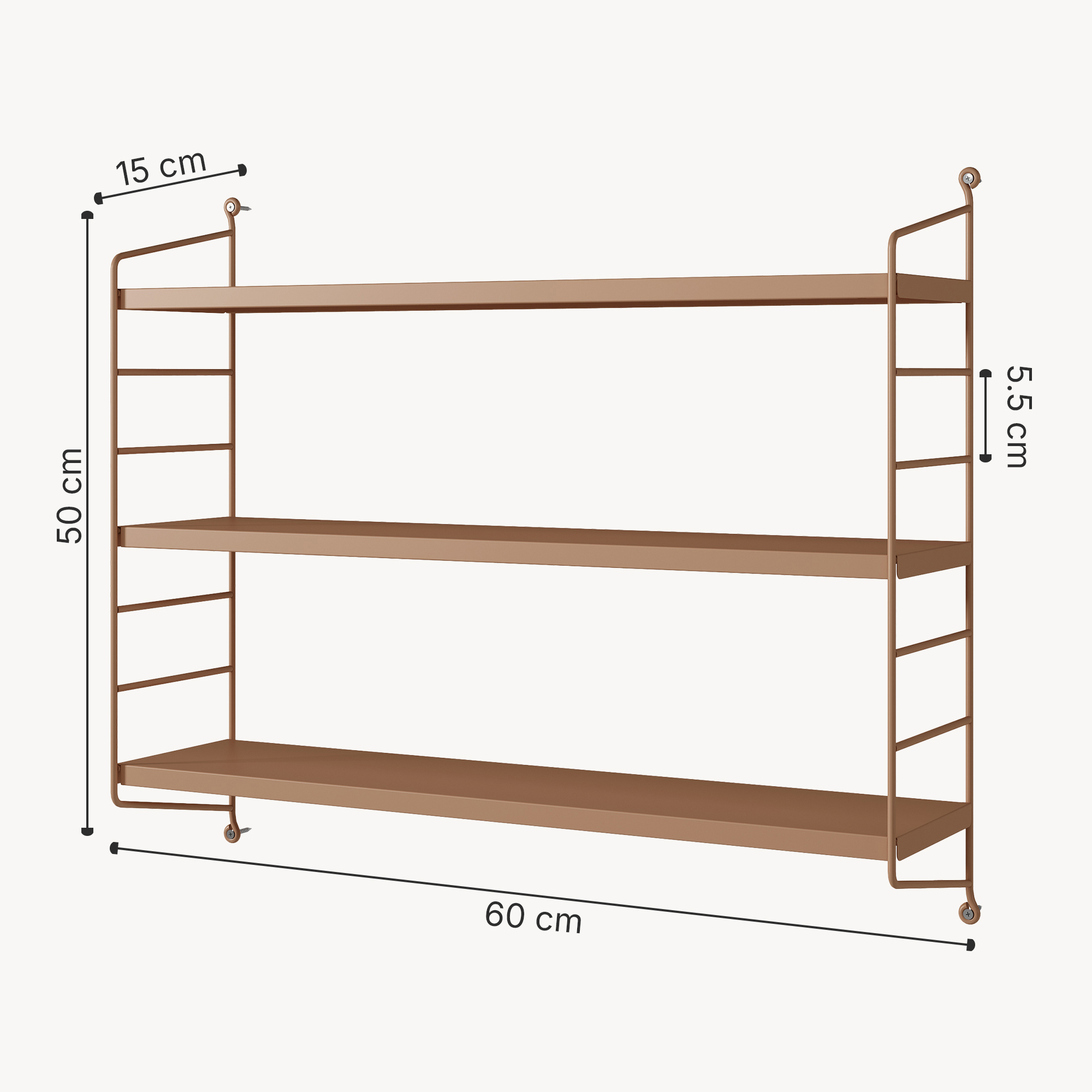 Montajul pe perete este rapid și simplu, iar materialele incluse te ajută să îl fixezi cu ușurință. Cadrul din oțel oferă stabilitate, iar fiecare poliță suportă o greutate de până la 5 kg, fiind potrivită atât pentru obiecte decorative, cât și pentru articole de uz frecvent.