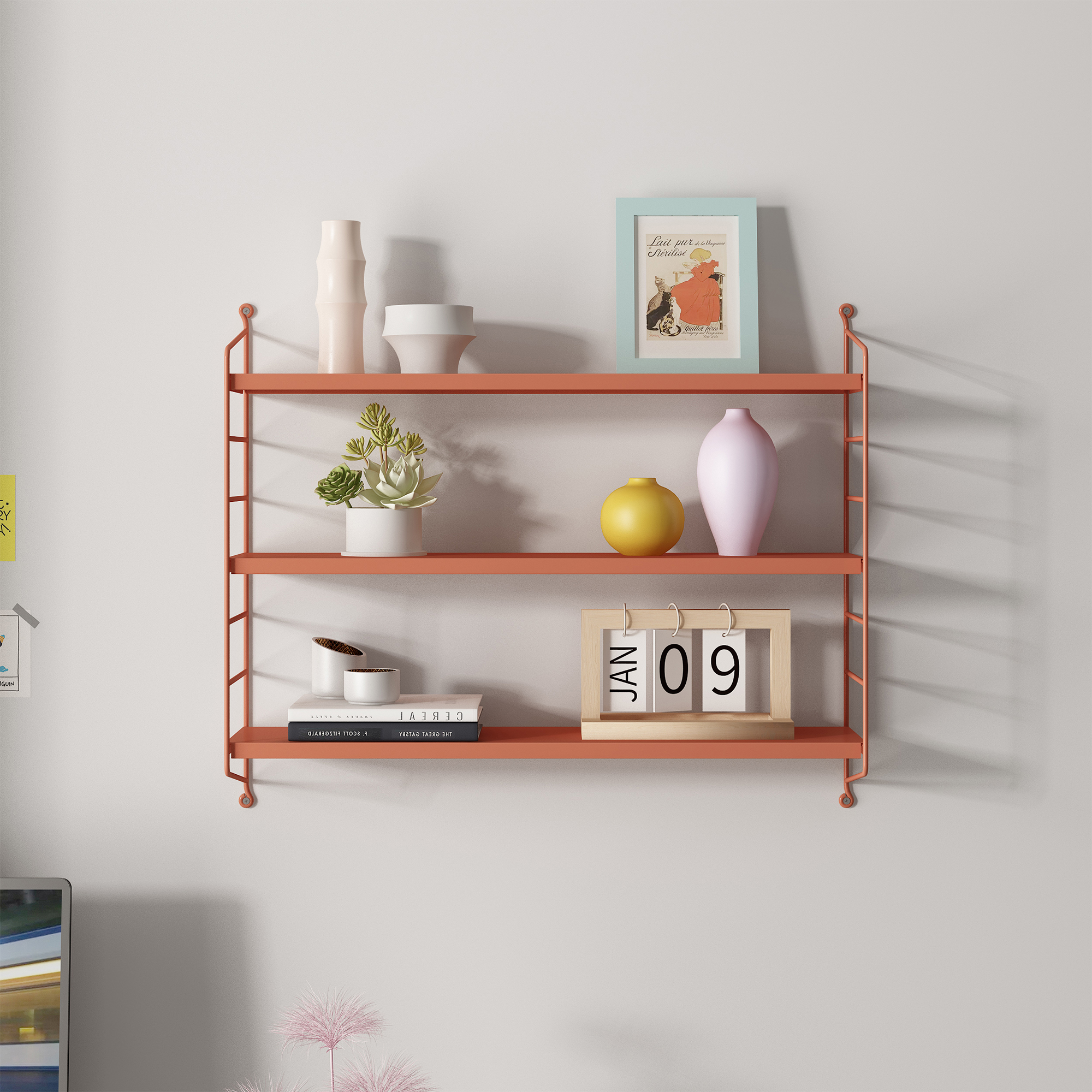 Raftul de perete modular Strängnäs este o alegere inspirată pentru organizarea și decorarea locuinței. Cu un design simplu, modern și o nuanță elegantă de roșu cărămiziu mat, acest raft de perete adaugă personalitate oricărei încăperi și oferă un spațiu practic pentru expunerea obiectelor preferate.