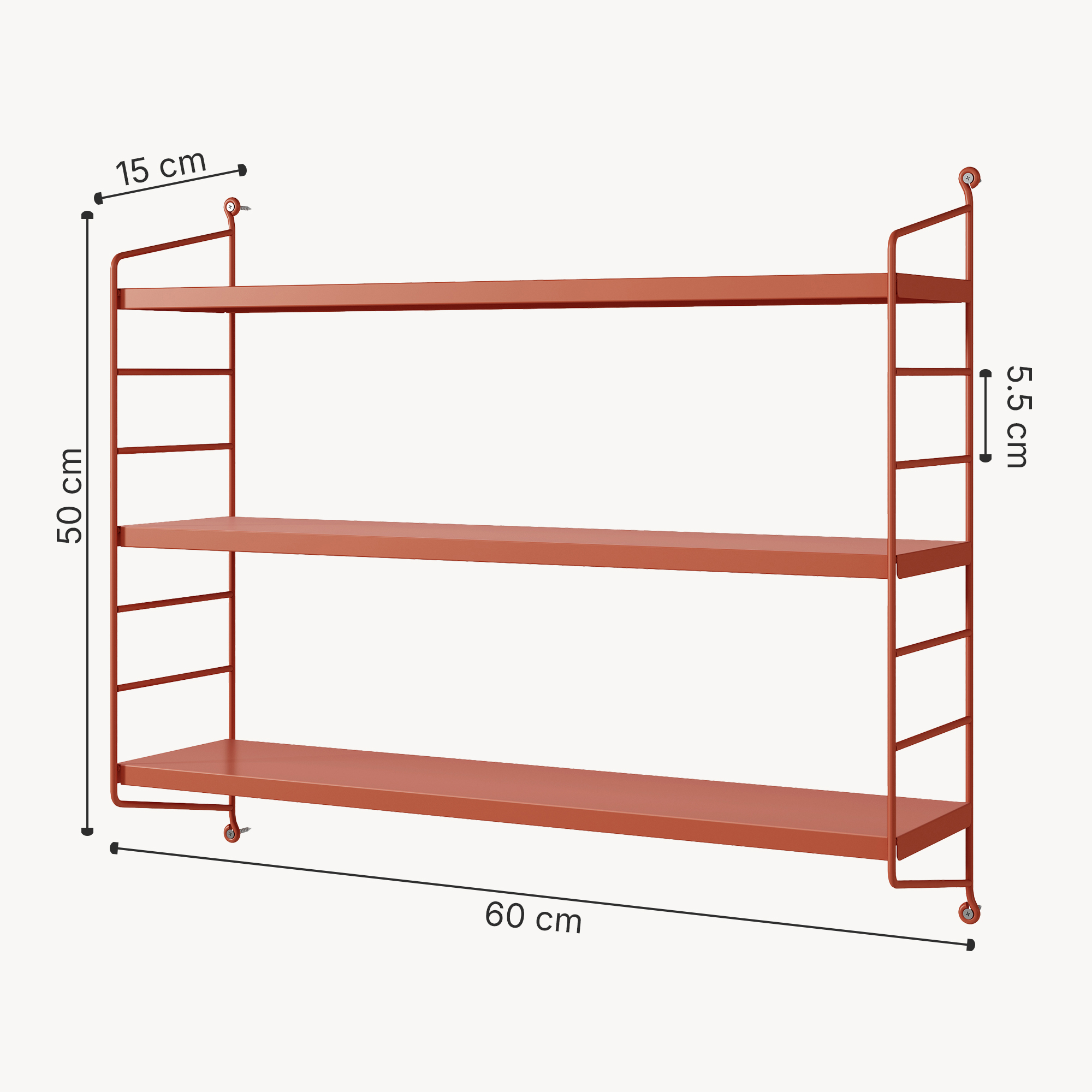 Raft de perete modular Strängnäs, roșu cărămiziu mat, 3 polițe