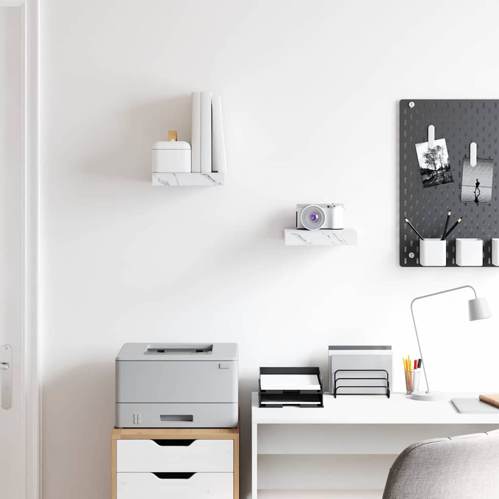 Raft de perete Pe perete 2 pcs Marmură albă 23 x 23,5 x 4 cm GartenMobel Dekor
