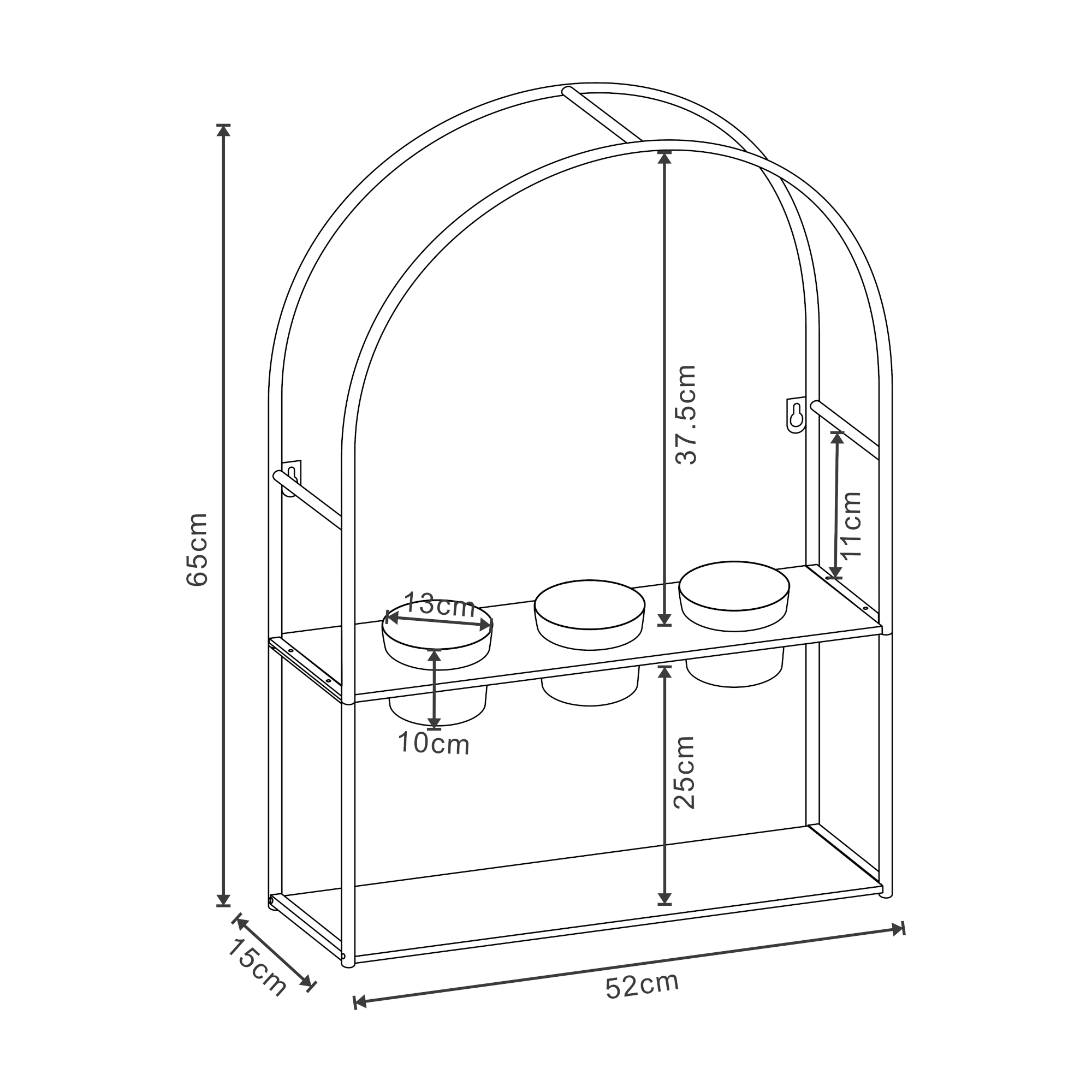 Prevăzut cu 3 ghivece incluse, acest suport flori de perete îți permite să expui plantele într-un mod ordonat și decorativ. În plus, polița inferioară oferă spațiu suplimentar pentru alte ghivece, plante curgătoare sau obiecte decorative.